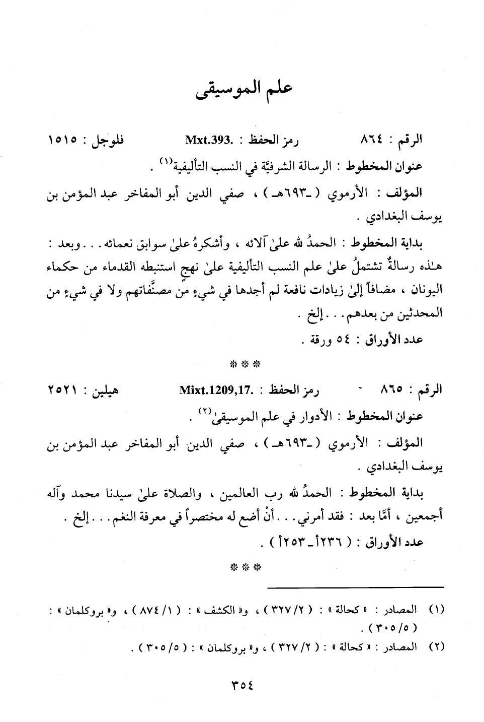 عنوان المخطوط: الأدوار في علم الموسيقى (¬2).