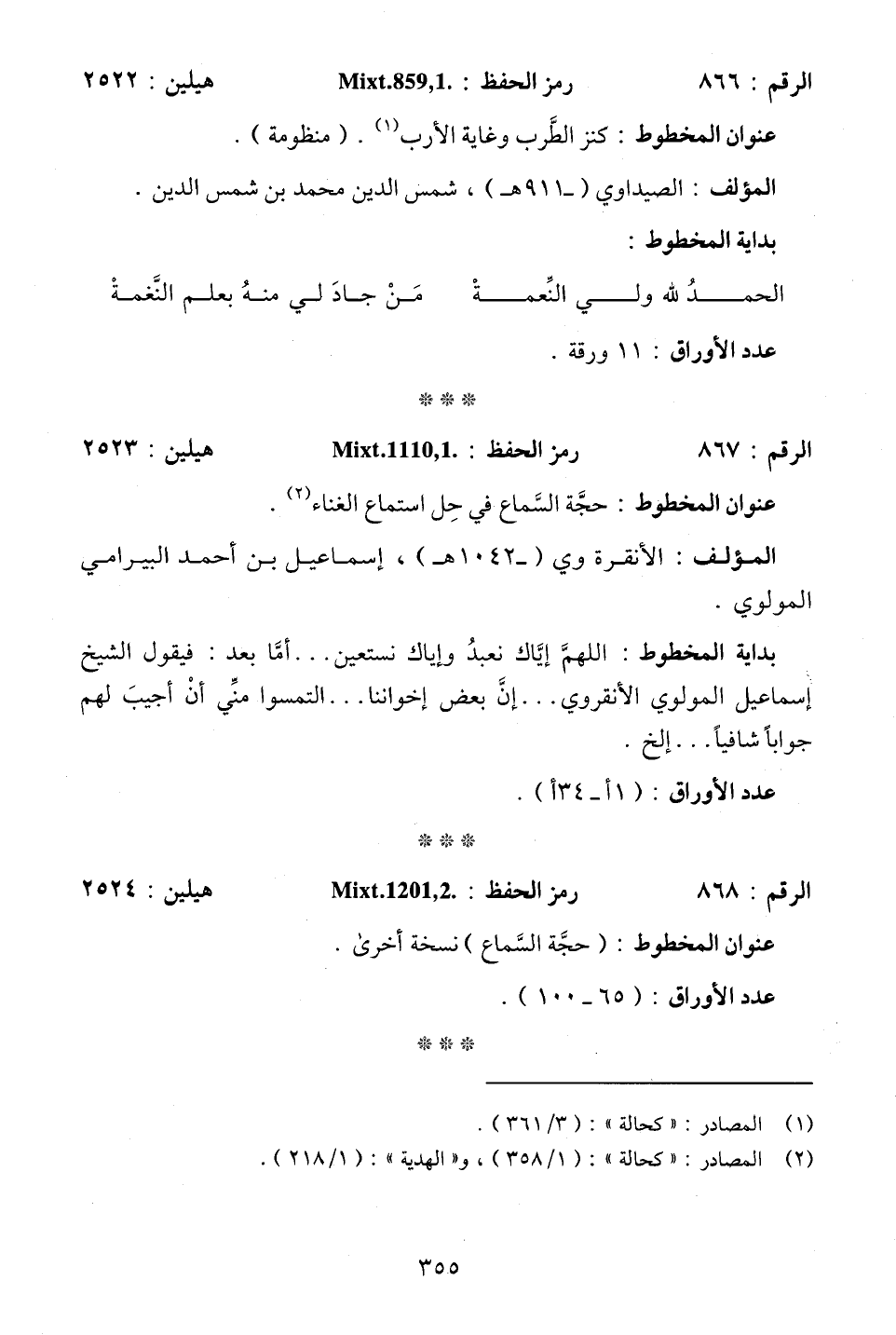 الرقم: 866. . . رمز الحفظ: Mixt.859,1 . . . هيلين: 2522