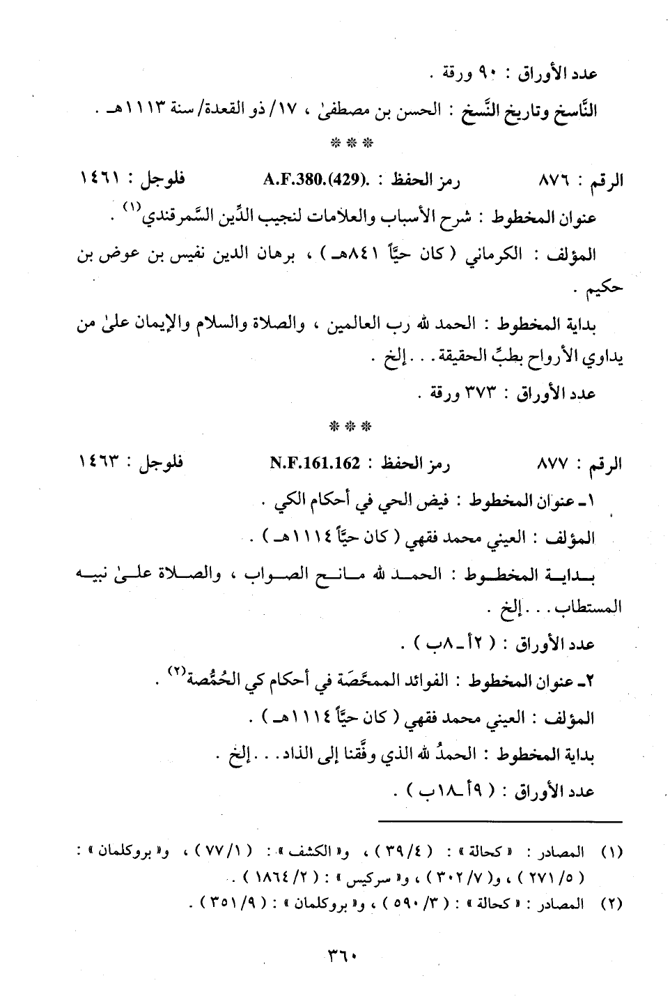 (¬1) المصادر: "كحالة": (4/ 39)، و"الكشف": (1/ 77)، و"بروكلمان": (5/ 271)، و (7/ 302)، و"سركيس": (2/ 1864).