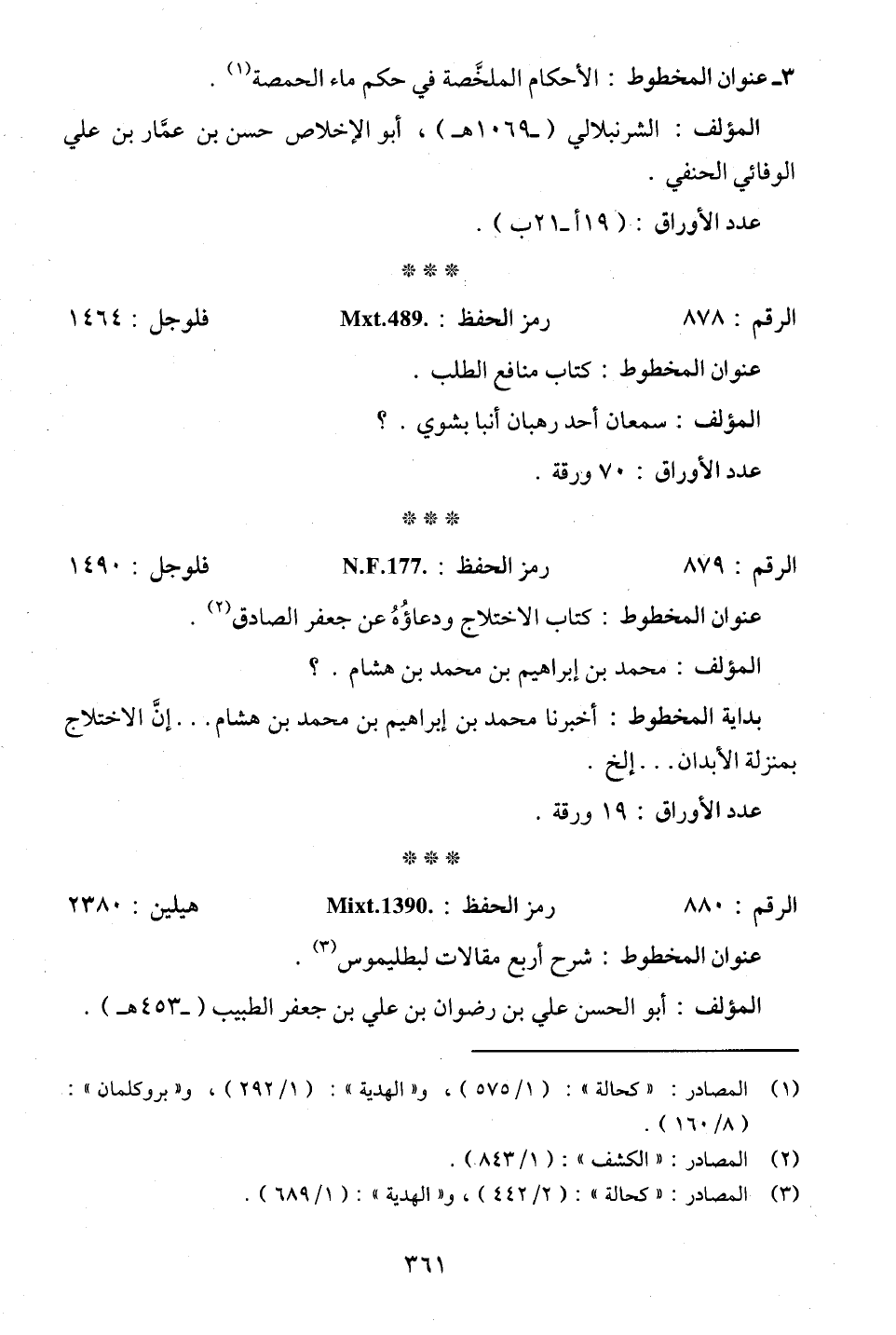 (¬1) المصادر: "كحالة": (1/ 575)، و"الهدية": (1/ 292)، و"بروكلمان": (8/ 160).