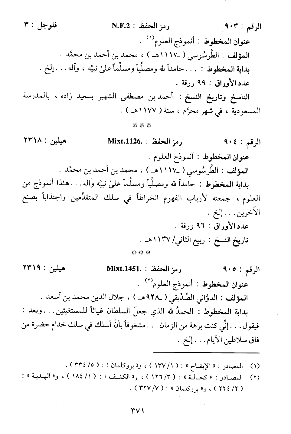 الرقم: 903. . . رمز الحفظ: N.F.2 . . . فلوجل: 3