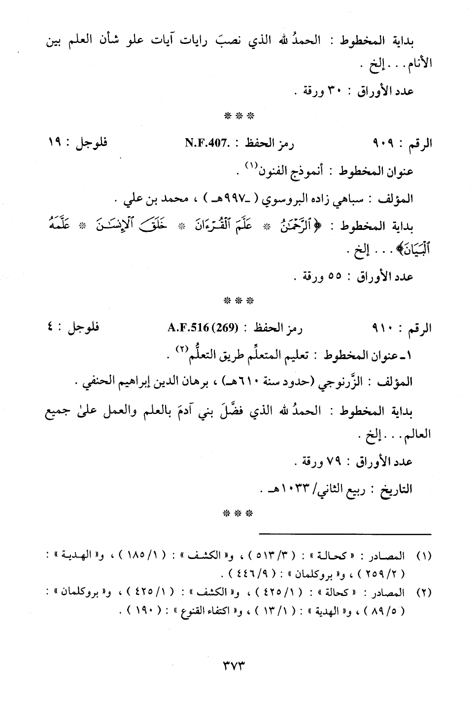 (¬2) المصادر: "كحالة": (1/ 425)، و"الكشف": (1/ 425)، و"بروكلمان": (5/ 89)، و"الهدية": (1/ 13)، و"اكتفاء القنوع": (190).