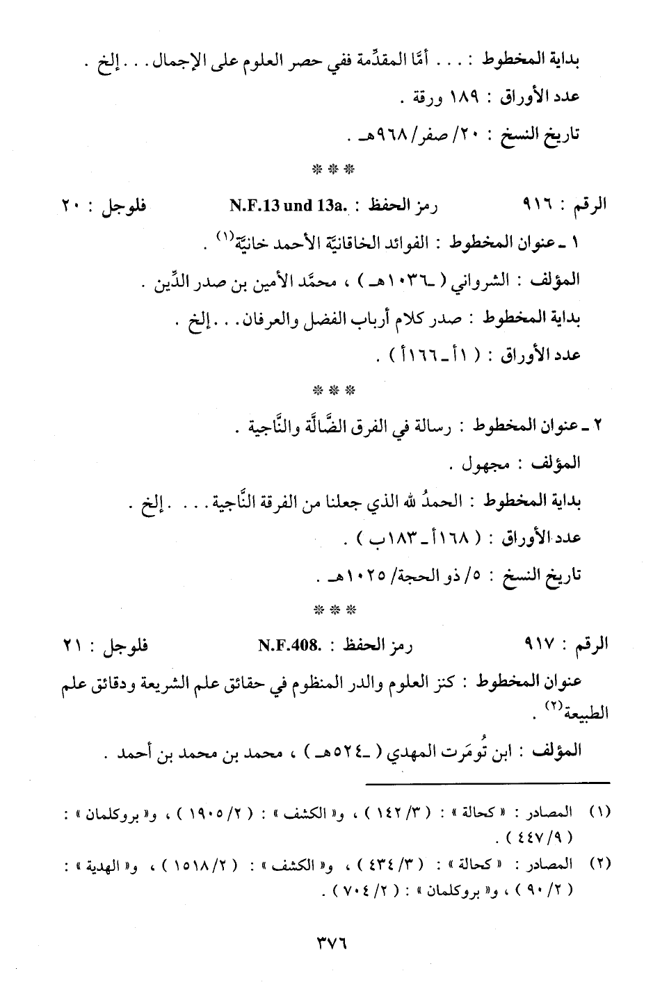 الرقم: 916. . . رمز الحفظ: N.F.13 und 13 a . . . فلوجل: 20