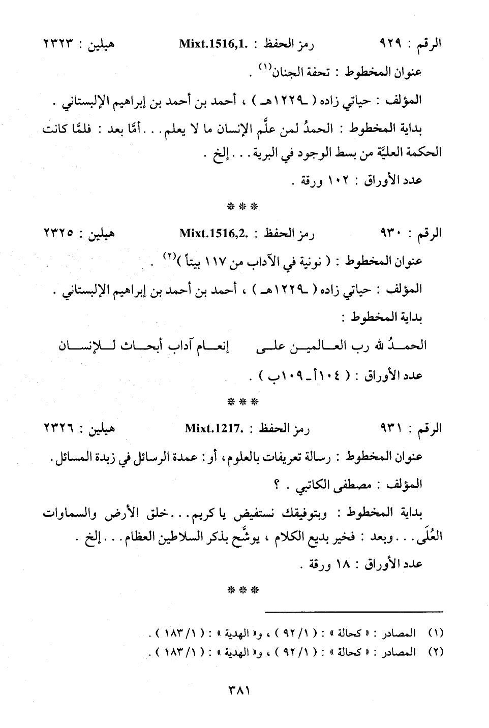 المؤلف: حياتي زاده (- 1229 هـ)، أحمد بن أحمد بن إبراهيم الإلبستاني.
