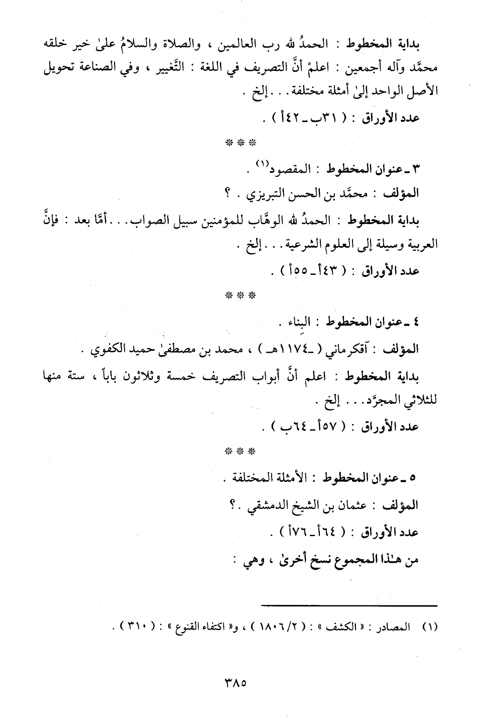 5 - عنوان المخطوط: الأمثلة المختلفة.