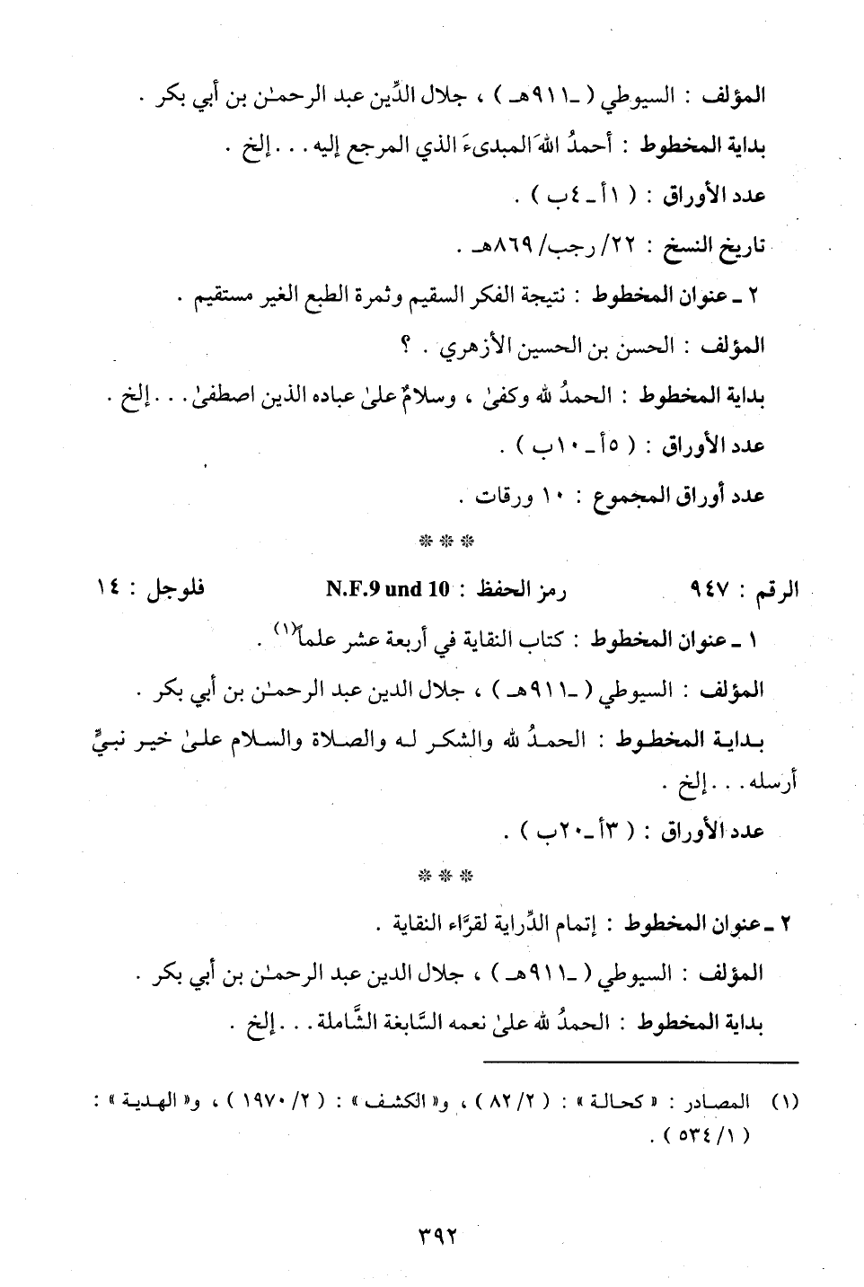 الرقم: 947. . . رمز الحفظ: N.F.9 und 10 . . . فلوجل: 14