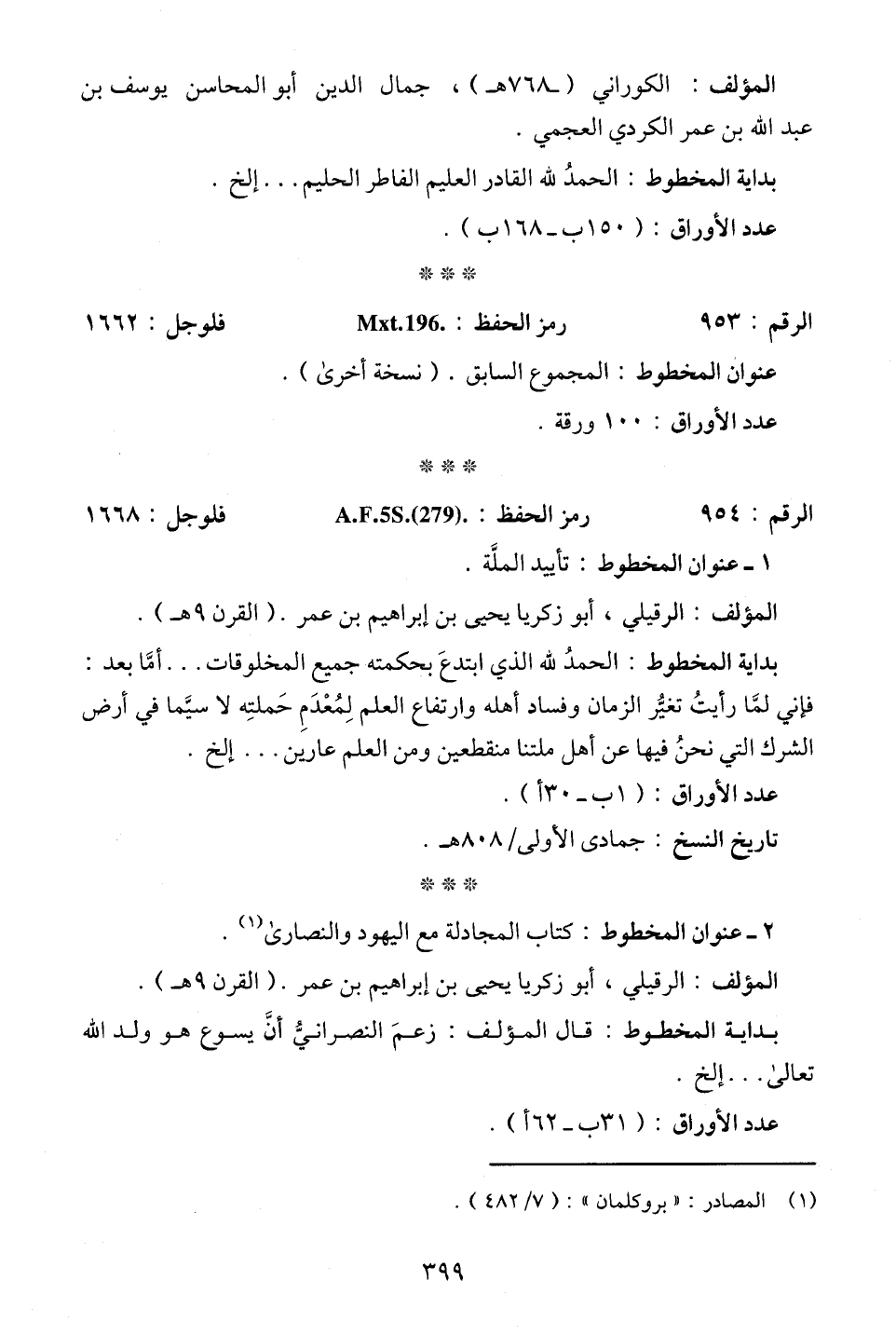 (¬1) المصادر: "بروكلمان": (7/ 482).