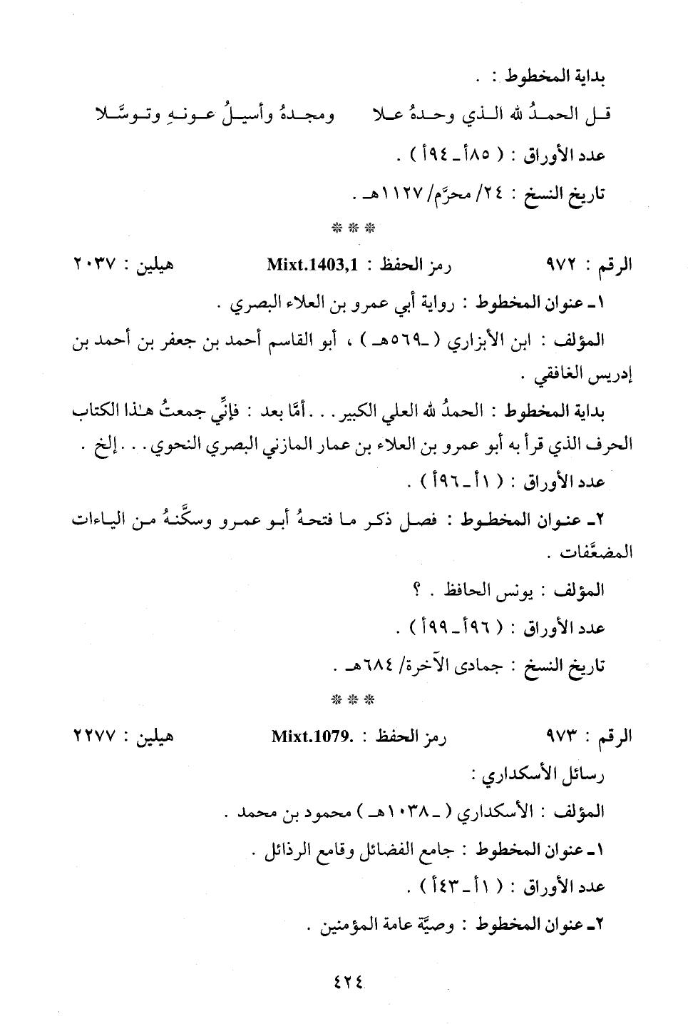 الرقم: 973. . . رمز الحفظ: Mixt.1079. . . هيلين: 2277