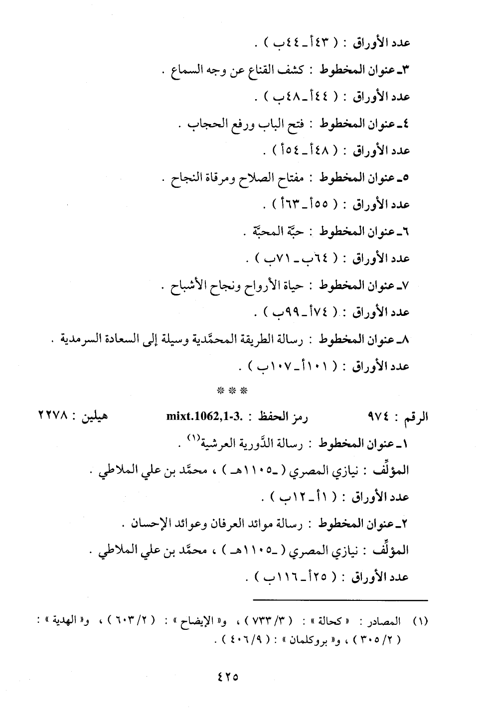 (¬1) المصادر: "كحالة": (3/ 733)، و"الإيضاح": (2/ 603)، و"الهدية": (2/ 305)، و"بروكلمان": (9/ 406).