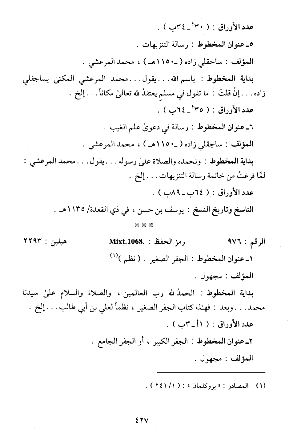 المؤلف: ساجقلي زاده (- 1150 هـ)، محمد المرعشي.