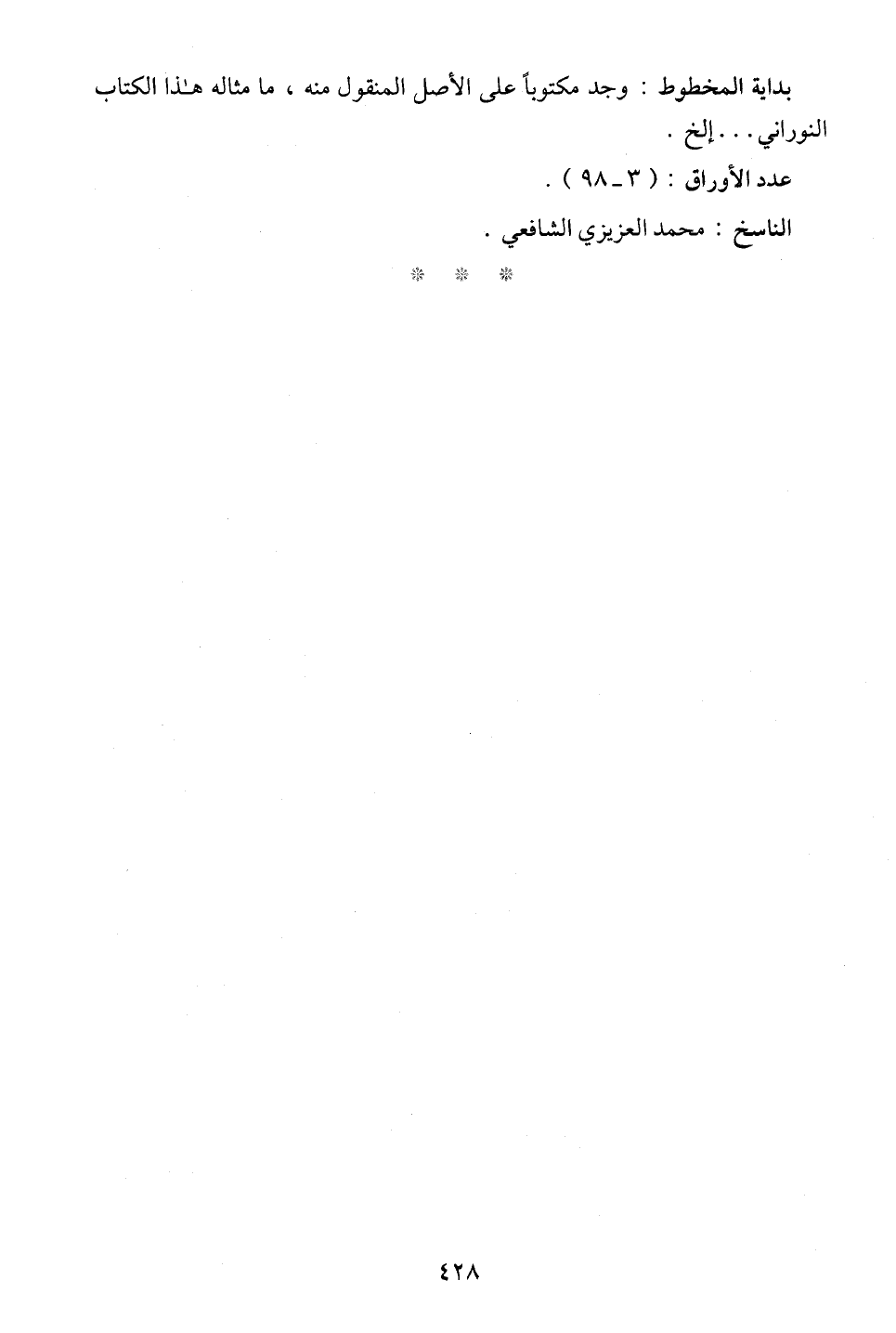 بداية المخطوط: وجد مكتوبًا على الأصل المنقول منه، ما مثاله هذا الكتاب النوراني. . . إلخ.
