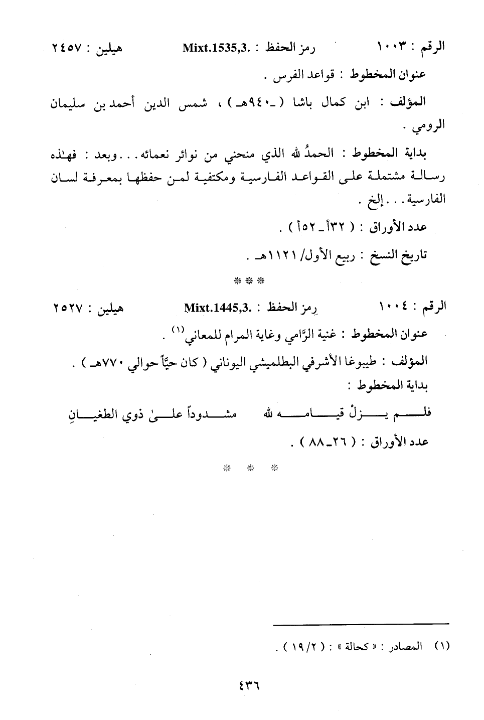 عنوان المخطوط: قواعد الفرس.