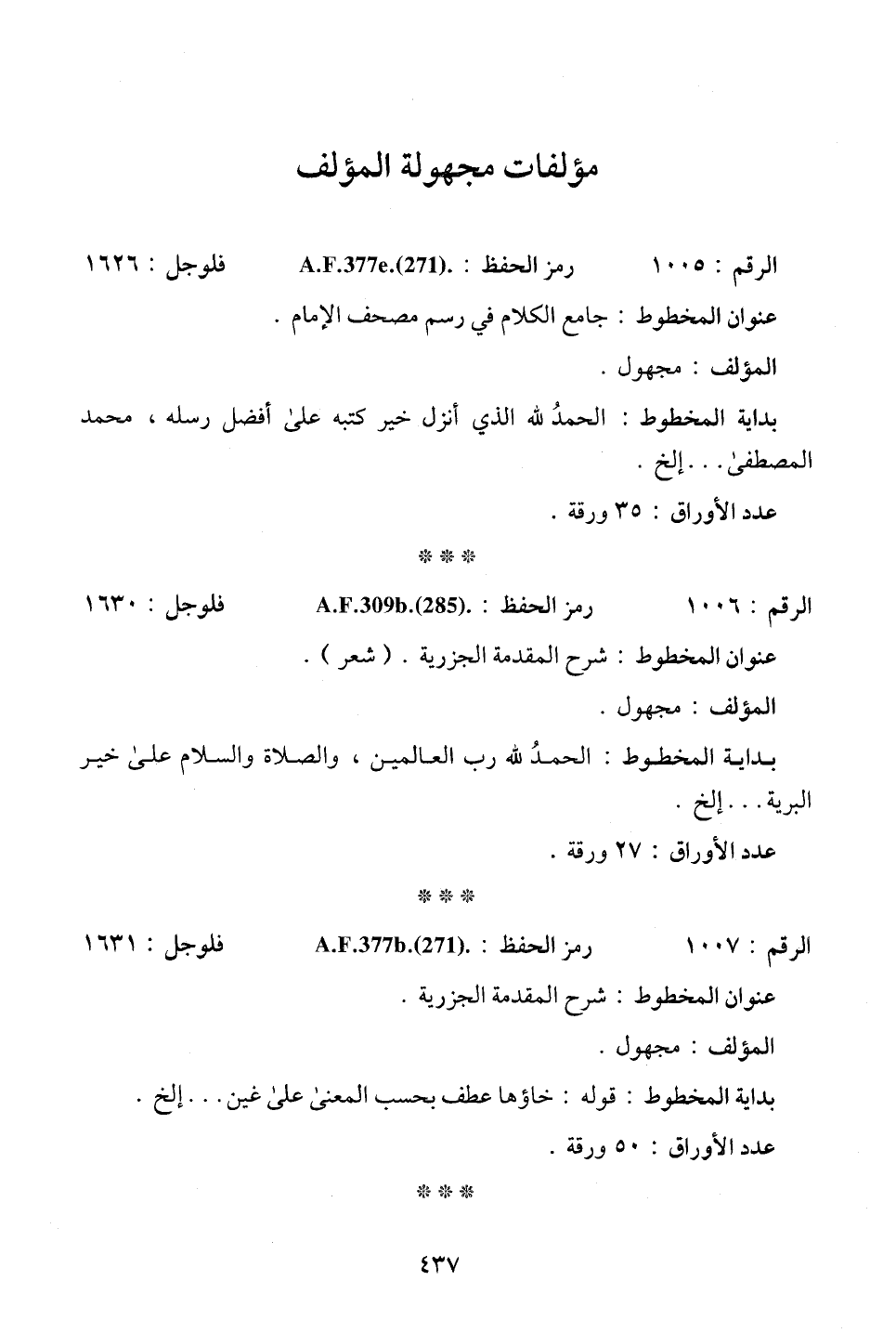 الرقم: 1007. . . رمز الحفظ: A.F.377 b.(271). . . فلوجل: 1631