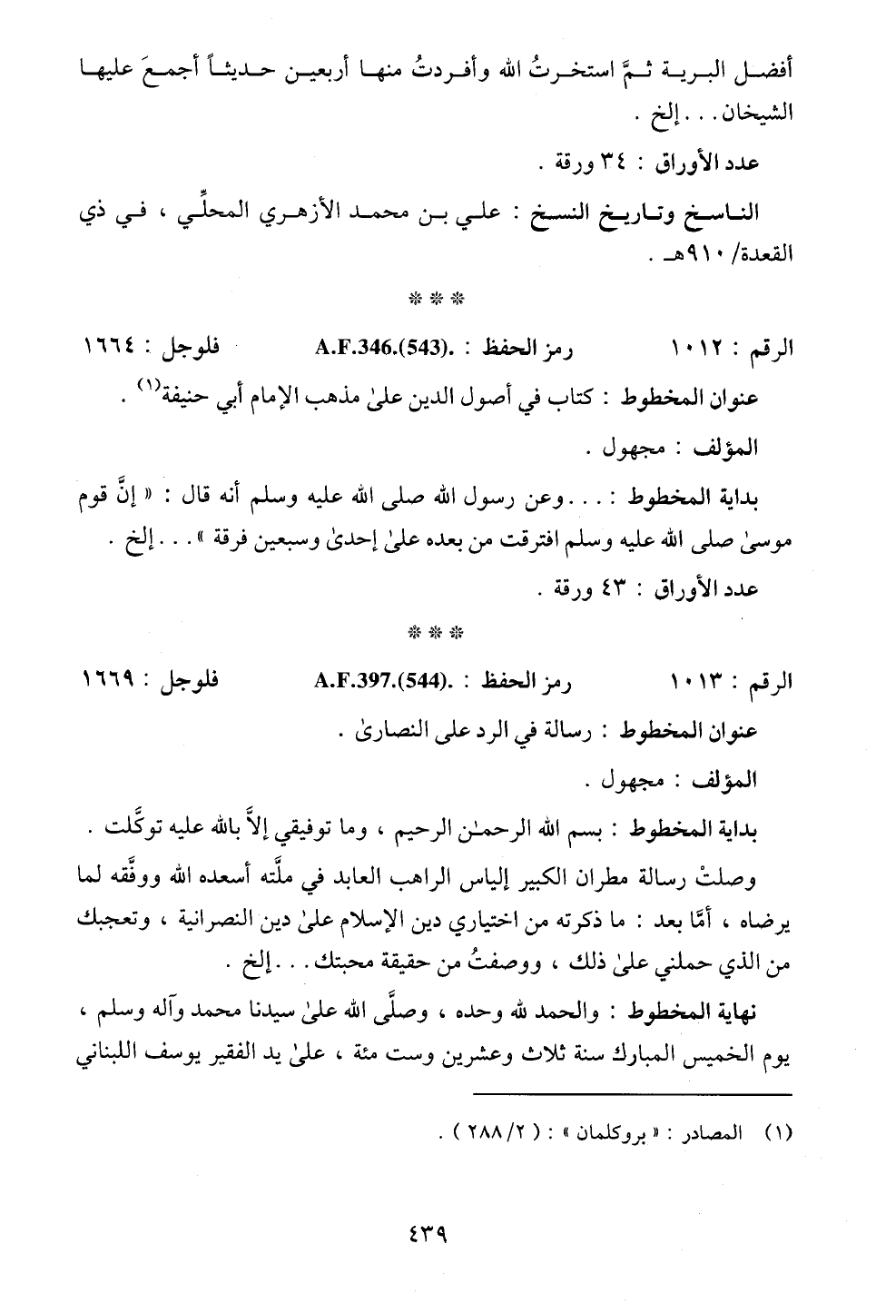 (¬1) المصادر: "بروكلمان": (2/ 288).