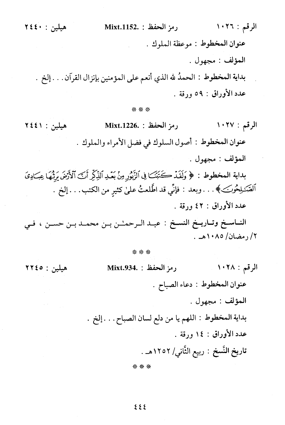 بداية المخطوط: {وَلَقَدْ كَتَبْنَا فِي الزَّبُورِ مِنْ بَعْدِ الذِّكْرِ أَنَّ الْأَرْضَ يَرِثُهَا عِبَادِيَ الصَّالِحُونَ}. . . وبعد: فإنِّي قد اطَّلعتُ على كثيرٍ من الكتب. . . إلخ.