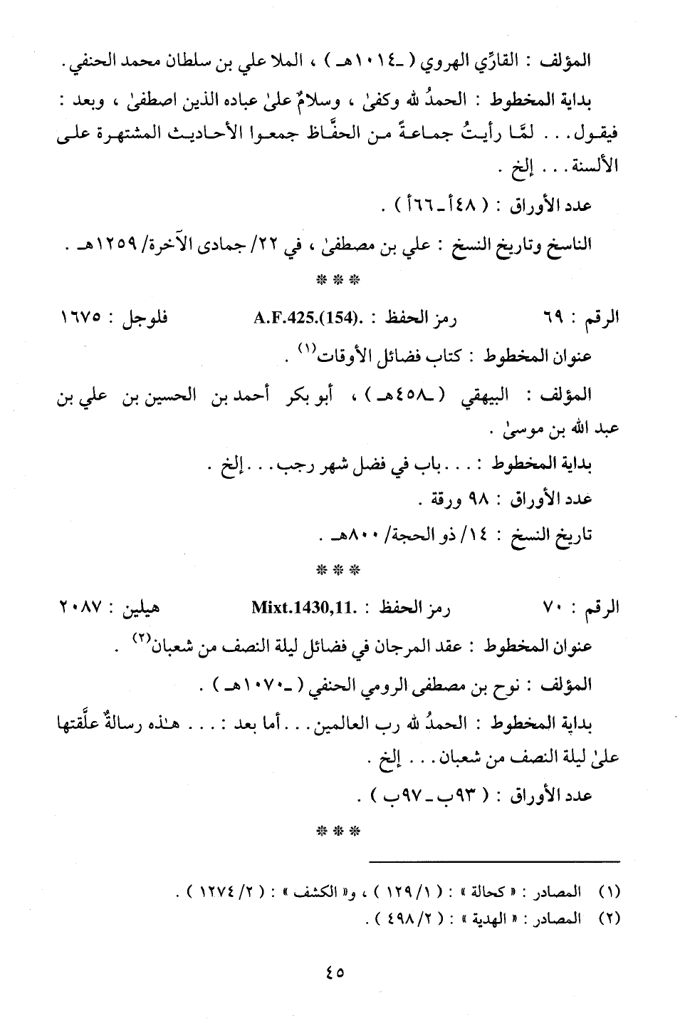 (¬1) المصادر: "كحالة": (1/ 129)، و"الكشف": (2/ 1274).