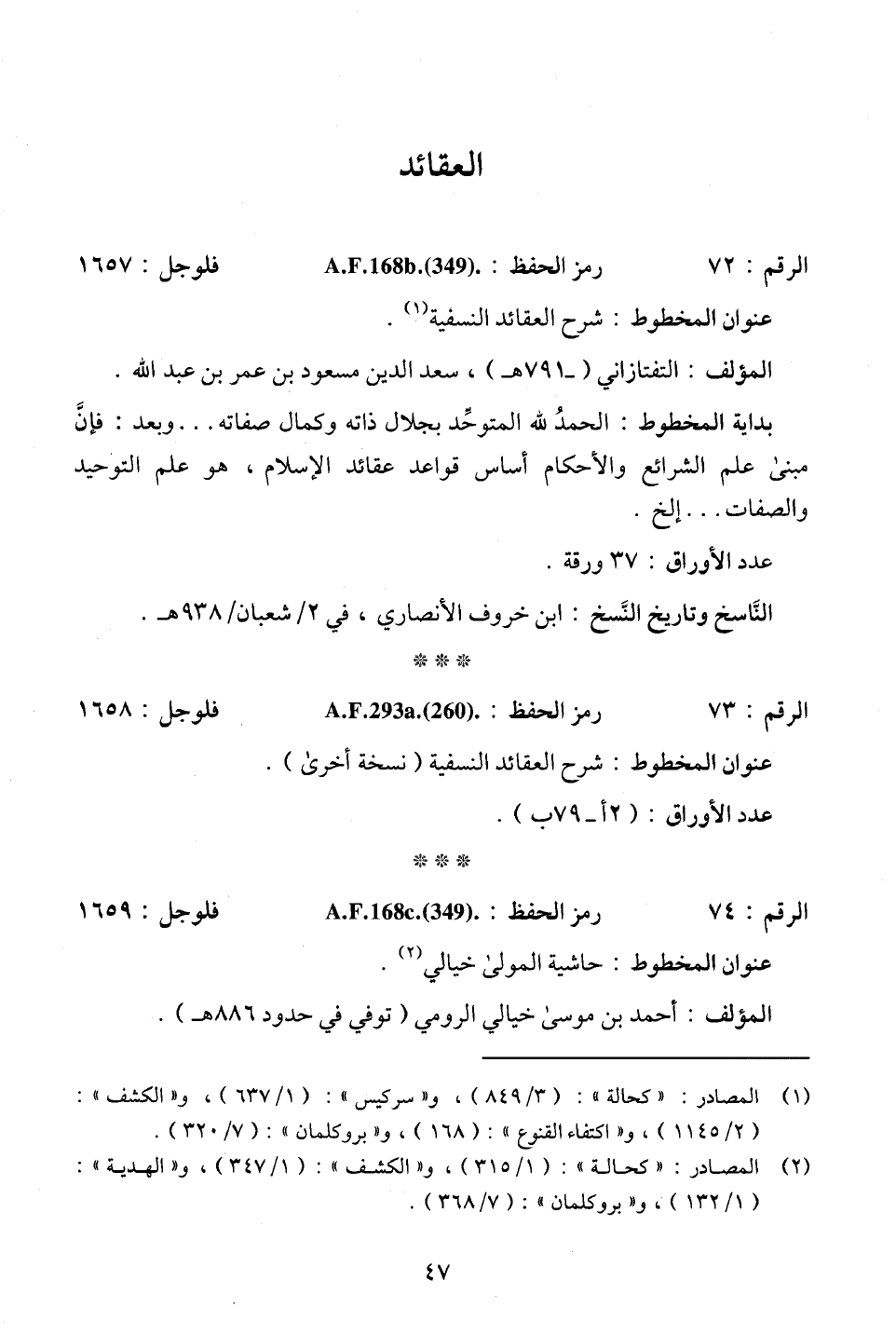 الرقم: 73. . . رمز الحفظ: A.F.293 a. (260) . . . فلوجل: 1658