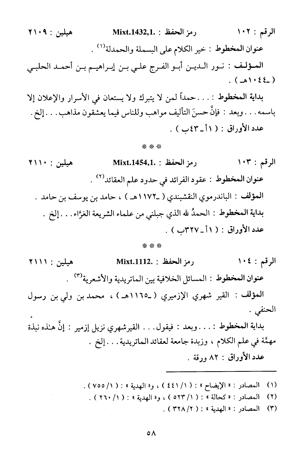 عنوان المخطوط: عقود الفرائد في حدود علم العقائد (¬2).