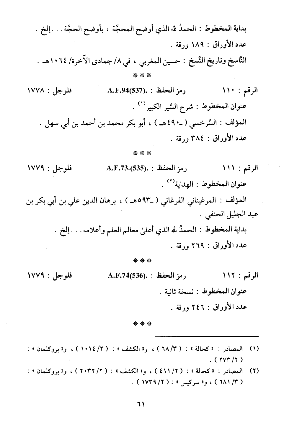 الرقم: 111. . . رمز الحفظ: A.F.73. (535) . . . فلوجل: 1779