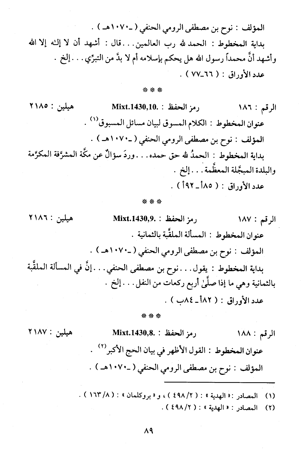 الرقم: 187. . . رمز الحفظ: Mixt.1430,9 . . . هيلين: 2186