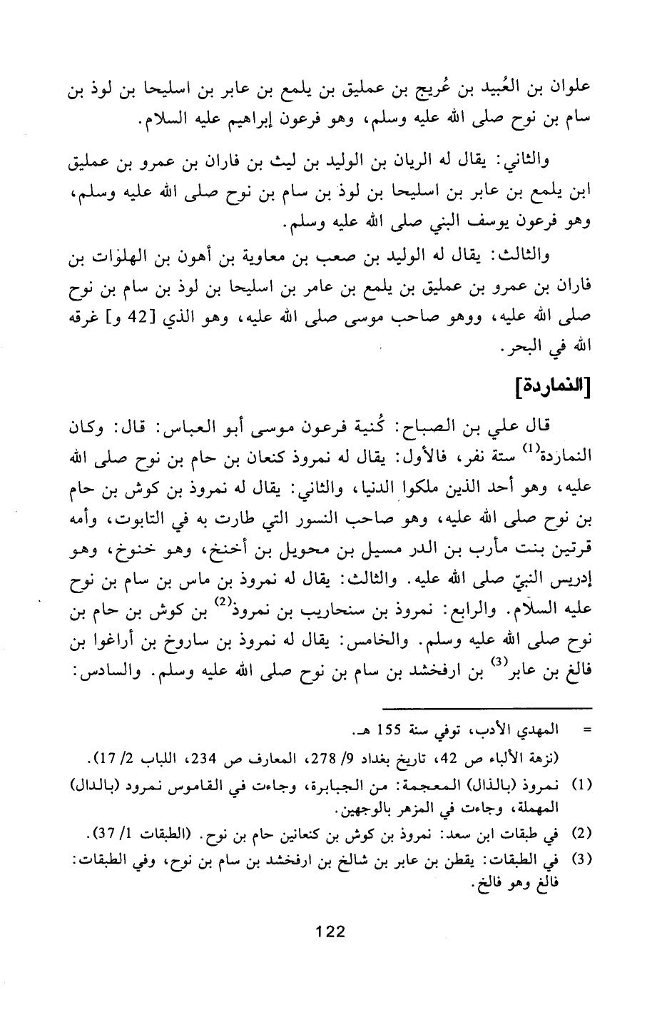 [2] في طبقات ابن سعد: نمروذ بن كوش بن كنعانين حام بن نوح. (الطبقات 1/37) .