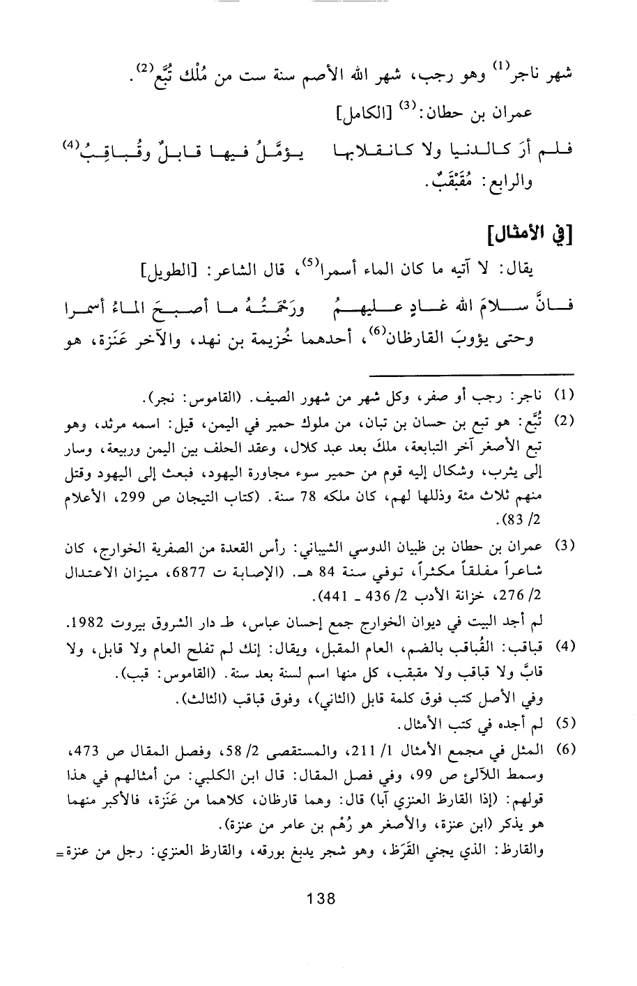 شهر ناجر [1] وهو رجب، شهر الله الأصم سنة ست من ملك تبّع [2] . عمران بن حطان: [3] [الكامل]
