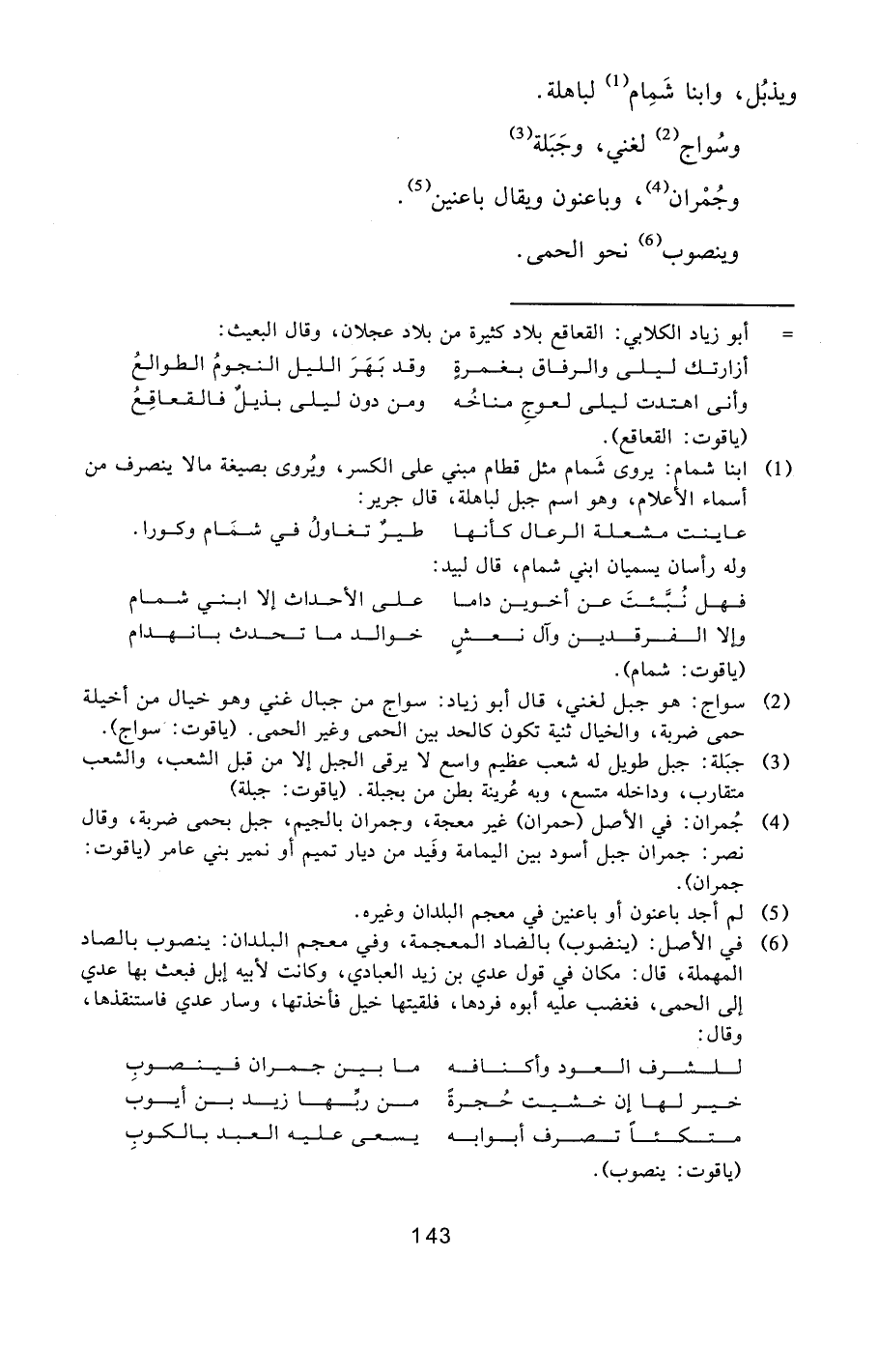 [4] جمران: في الأصل (حمران) غير معجة، وجمران بالجيم، جبل بحمى ضربة، وقال نصر: جمران جبل أسود بين اليمامة وفيد من ديار تميم أو نمير بني عامر (ياقوت: جمران) .