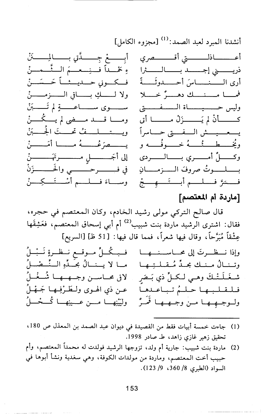 أنشدنا المبرد لعبد الصمد: [1] [مجزوء الكامل]