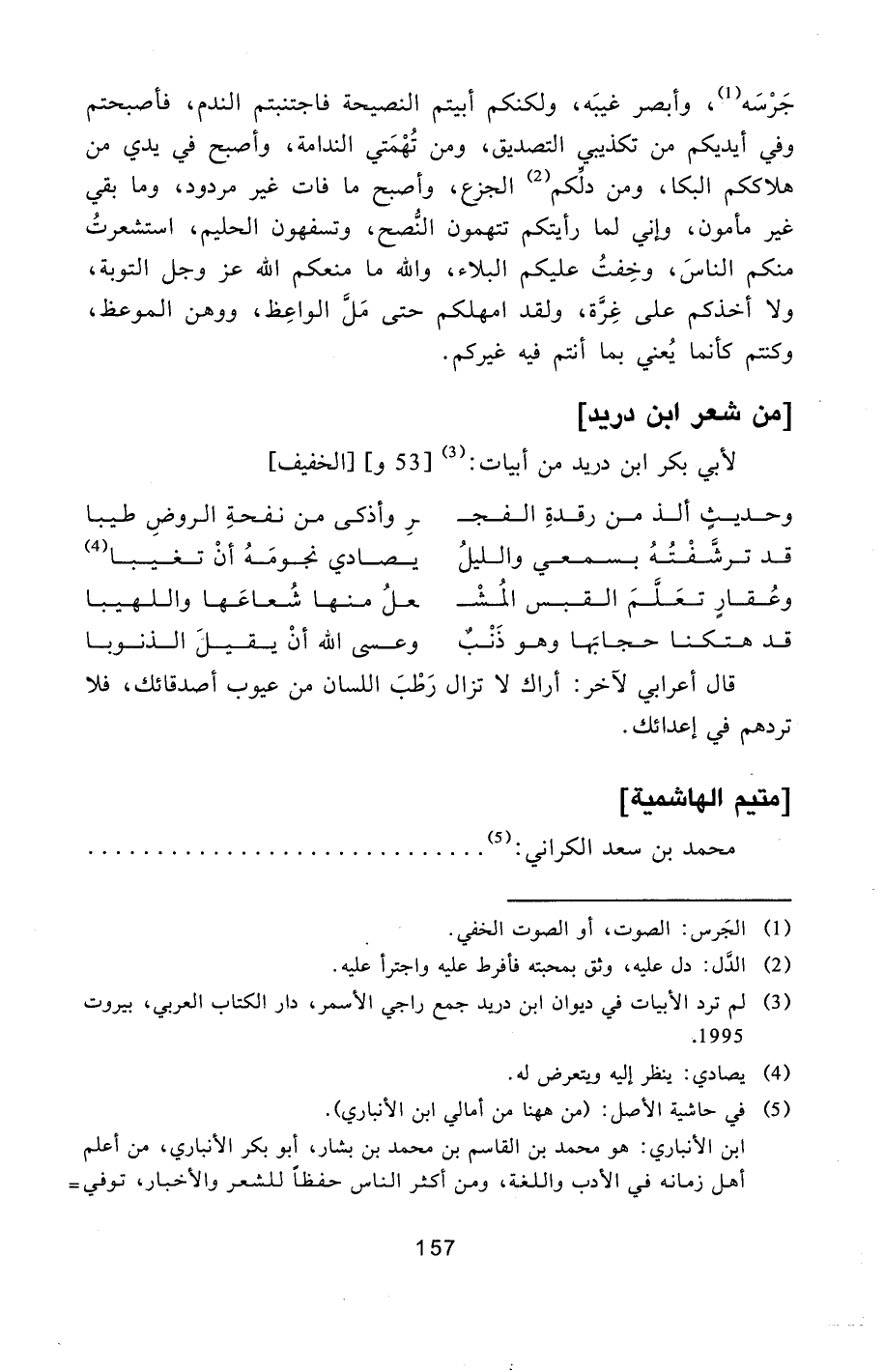 [3] لم ترد الأبيات في ديوان ابن دريد جمع راجي الأسمر، دار الكتاب العربي، بيروت 1995.