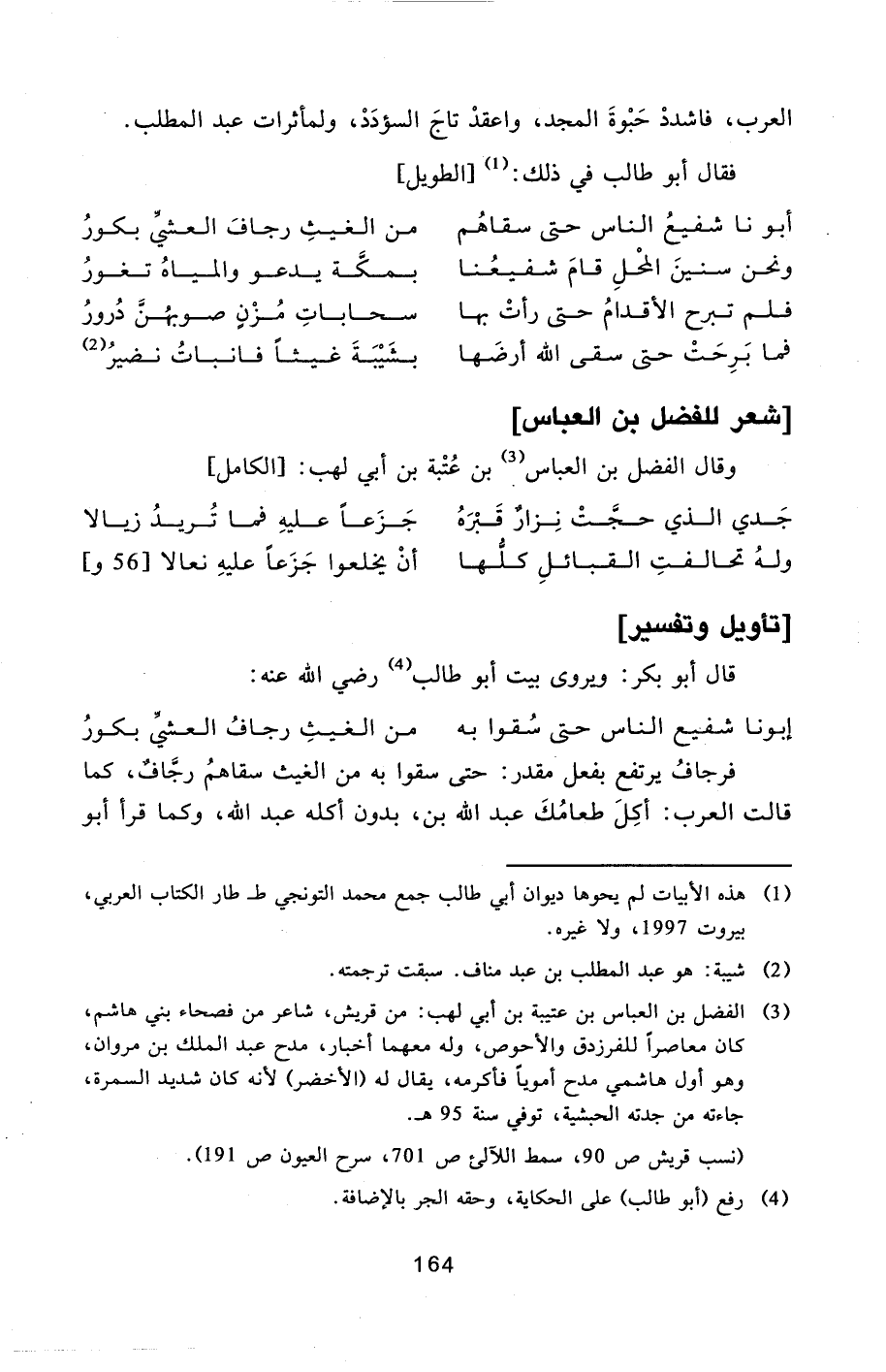 [3] الفضل بن العباس بن عتيبة بن أبي لهب: من قريش، شاعر من فصحاء بني هاشم، كان معاصرا للفرزدق والأحوص، وله معهما أخبار، مدح عبد الملك بن مروان، وهو أول هاشمي مدح أمويا فأكرمه، يقال له (الأخضر) لأنه كان شديد السمرة، جاءته من جدته الحبشية، توفي سنة 95 هـ.