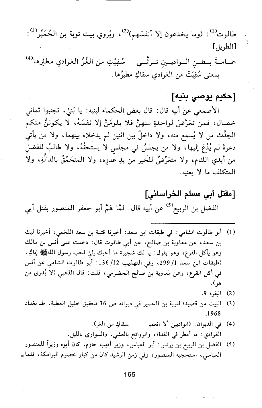 طالوت [1] : (وما يخدعون إلا أنفسهم) [2] ، ويروي بيت توبة بن الحميّر [3] :