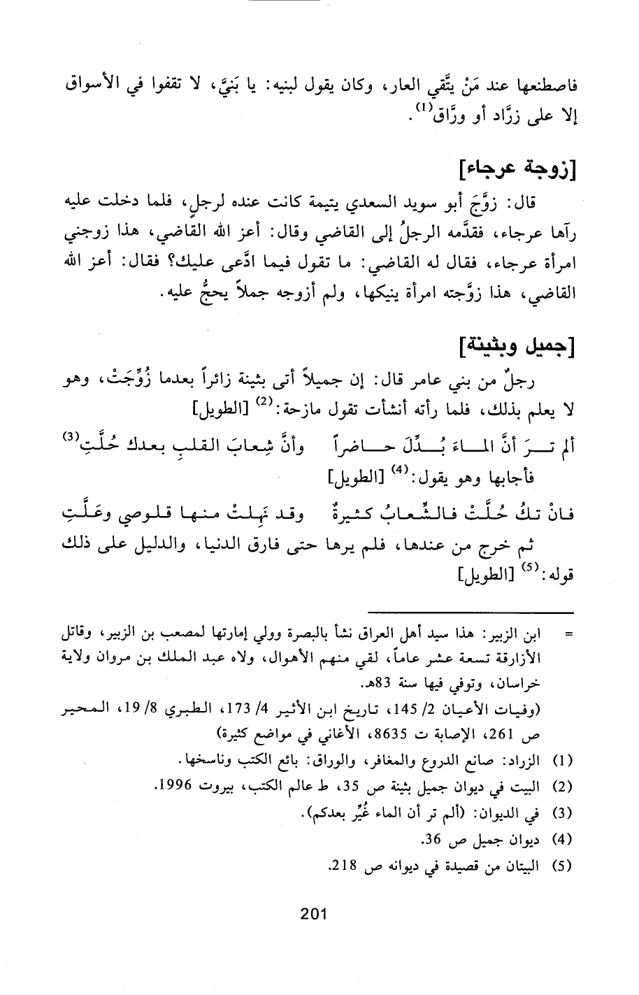 [2] البيت في ديوان جميل بثينة ص 35، ط- عالم الكتب، بيروت 1996.