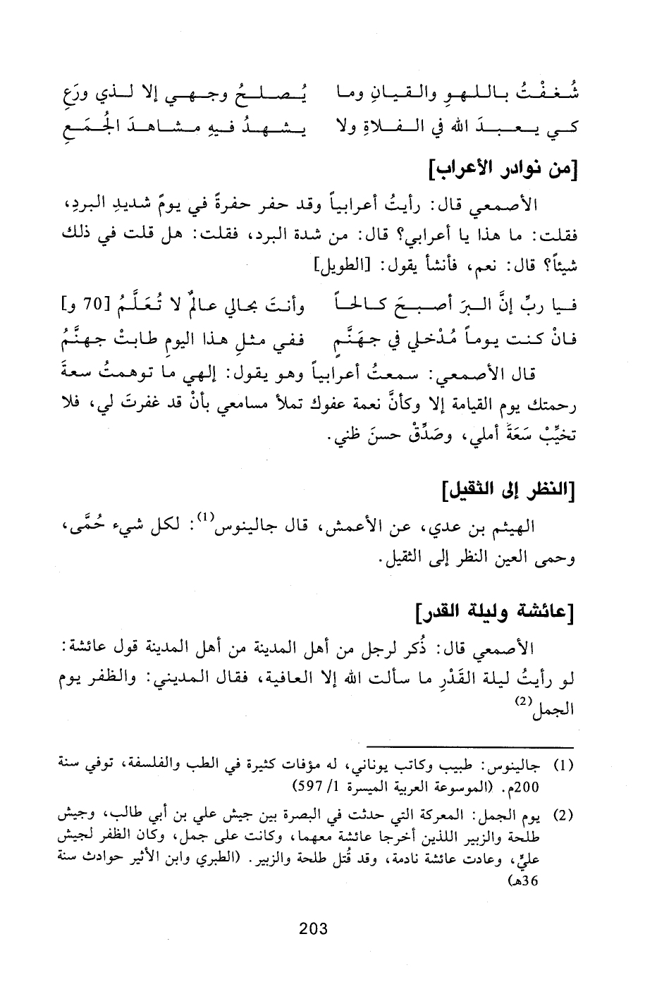 [2] يوم الجمل: المعركة التي حدثت في البصرة بين جيش علي بن أبي طالب، وجيش طلحة والزبير اللذين أخرجا عائشة معهما، وكانت على جمل، وكان الظفر لجيش عليّ، وعادت عائشة نادمة، وقد قتل طلحة والزبير. (الطبري وابن الأثير حوادث سنة 36 هـ)