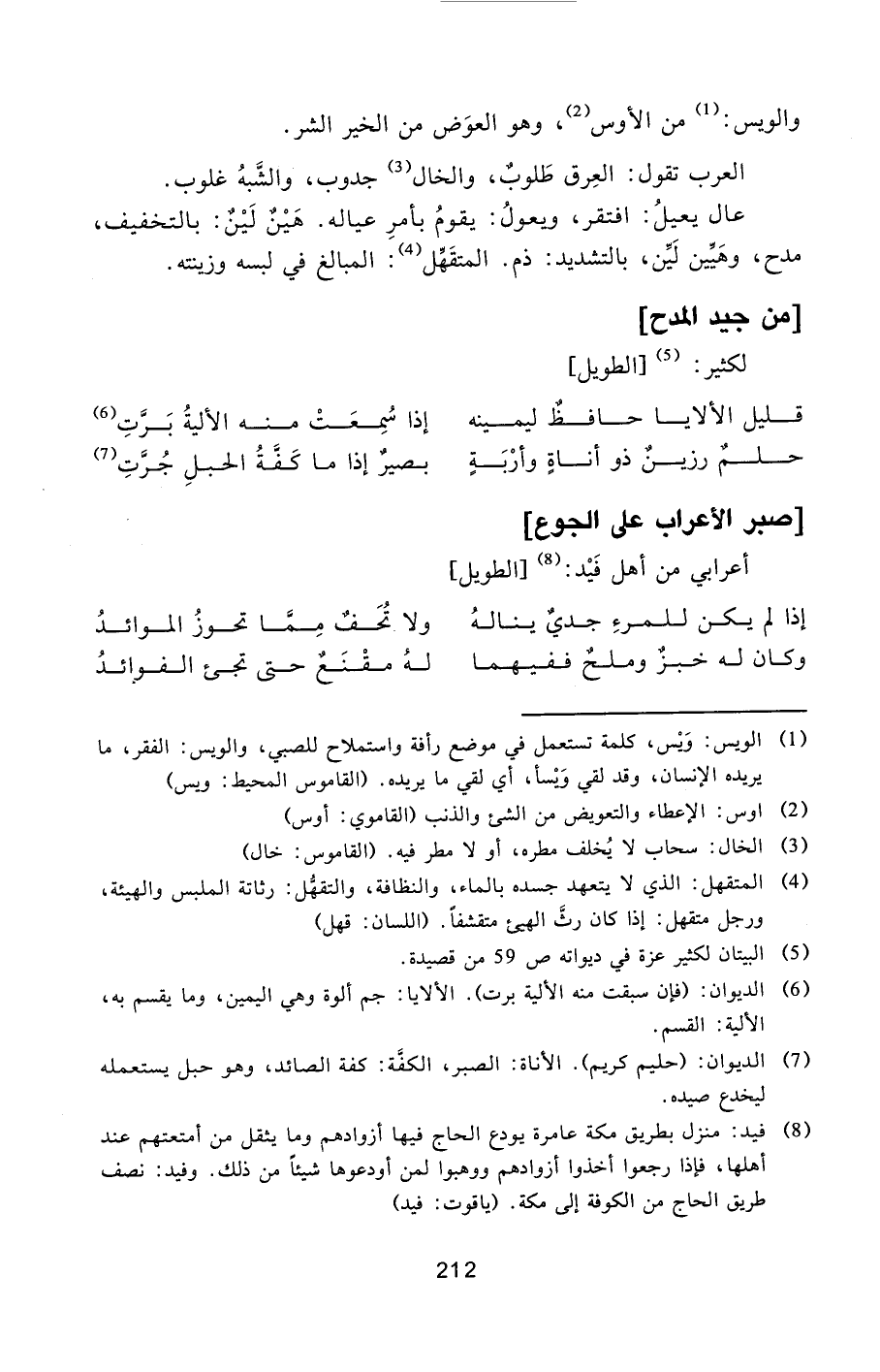 [7] الديوان: (حليم كريم) . الأناة: الصبر، الكفّة: كفة الصائد، وهو حبل يستعمله ليخدع صيده.