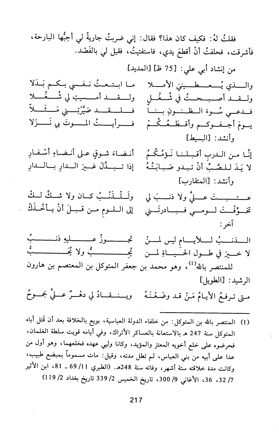 للمنتصر بالله [1] ، وهو محمد بن جعفر المتوكل بن المعتصم بن هارون الرشيد: [الطويل]