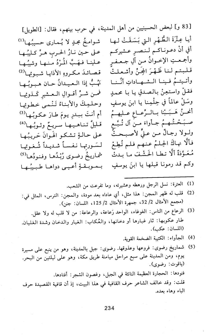 [83 و] لبعض الحسينيين من أهل المدينة، في حرب بينهم، فقال: [الطويل]