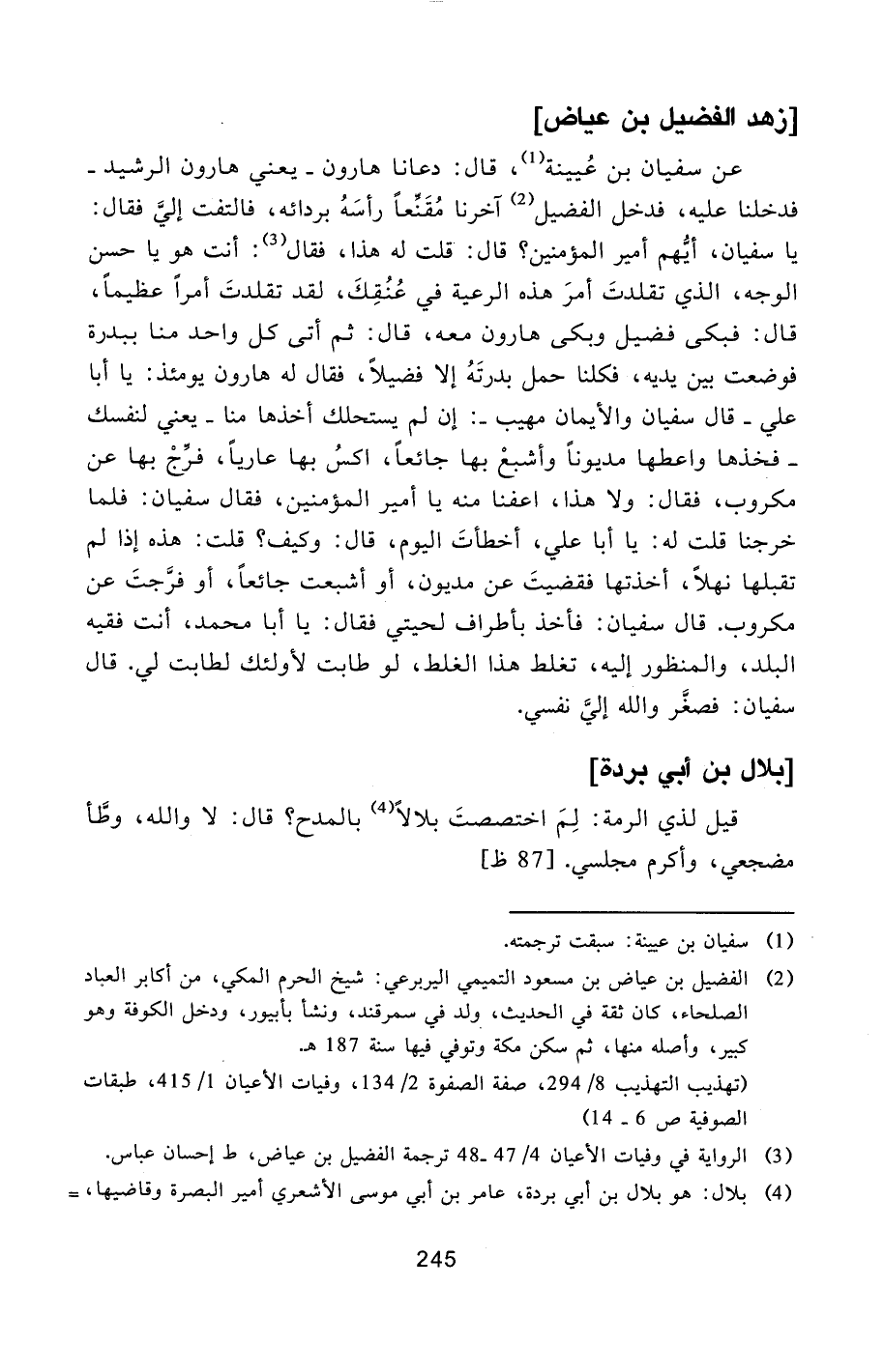 [3] الرواية في وفيات الأعيان 4/47- 48 ترجمة الفضيل بن عياض، ط- إحسان عباس.