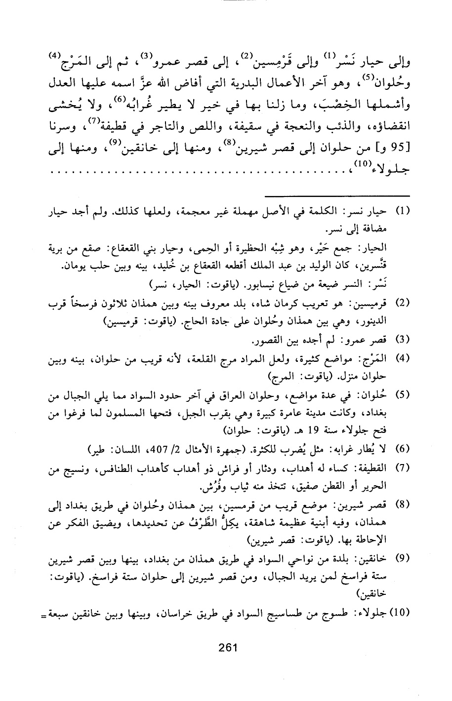 [4] المرج: مواضع كثيرة، ولعل المراد مرج القلعة، لأنه قريب من حلوان، بينه وبين حلوان منزل. (ياقوت: المرج)