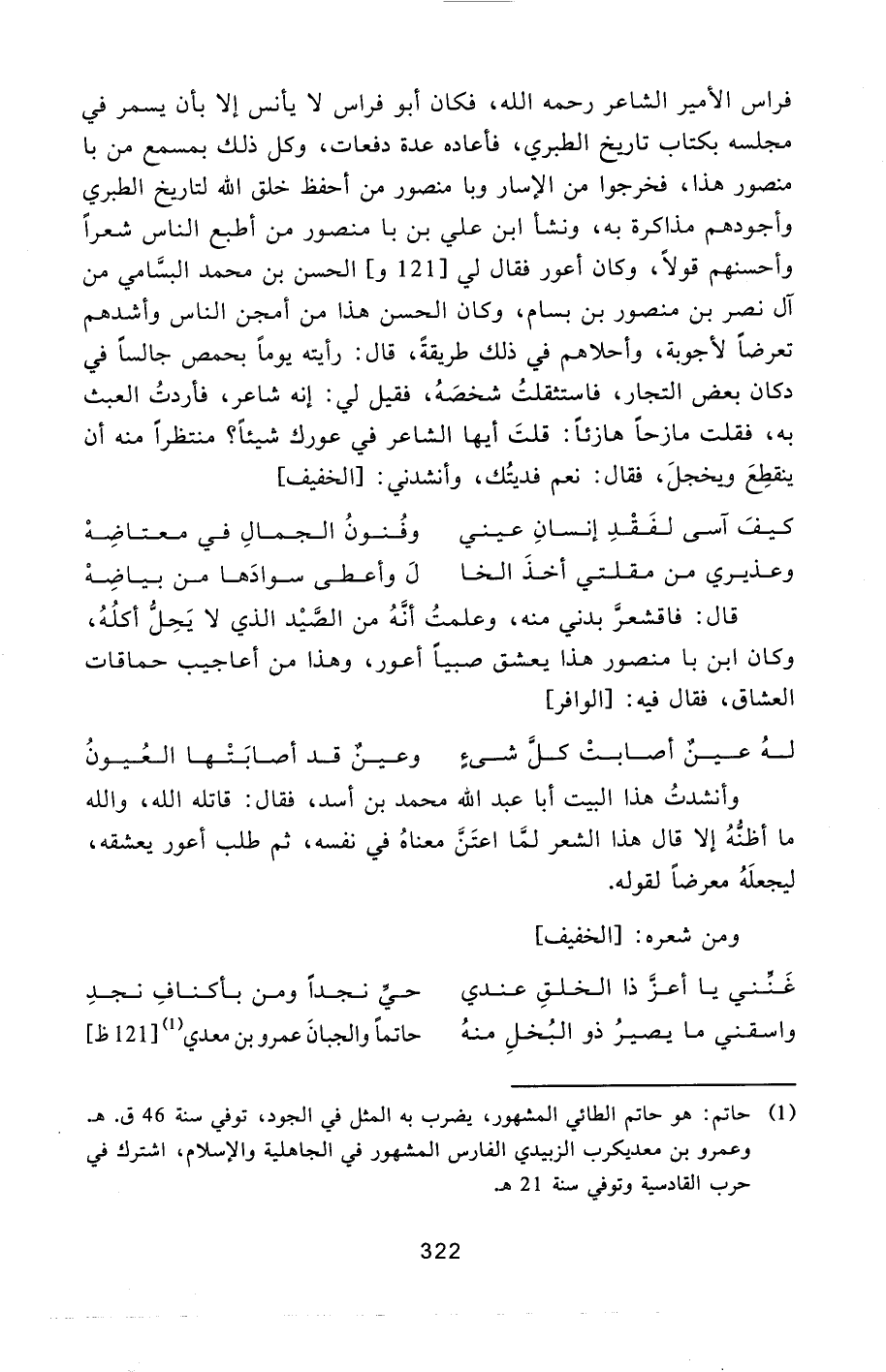 [1] حاتم: هو حاتم الطائي المشهور، يضرب به المثل في الجود، توفي سنة 46 ق. هـ.