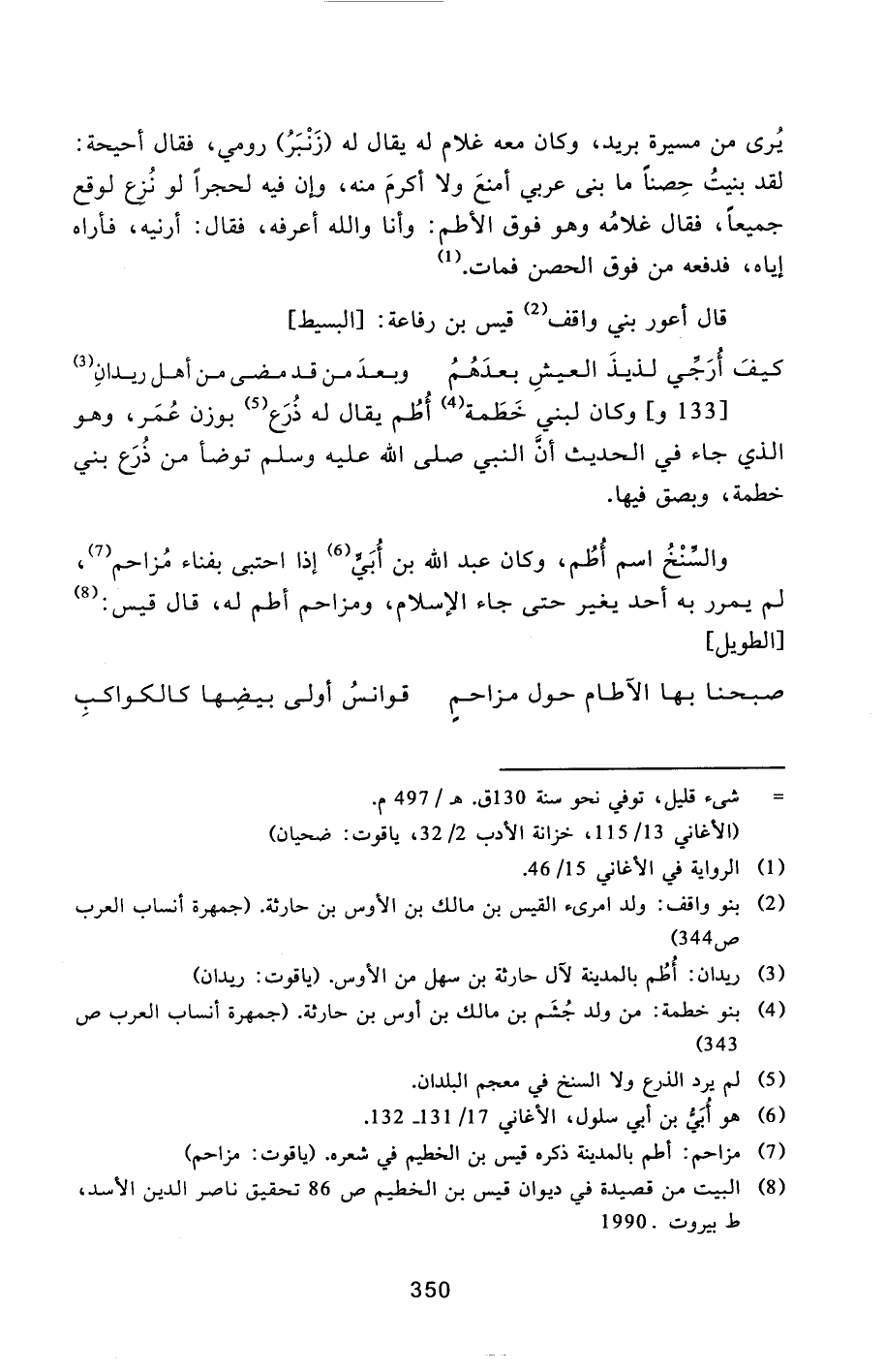[8] البيت من قصيدة في ديوان قيس بن الخطيم ص 86 تحقيق ناصر الدين الأسد، ط بيروت. 1990
