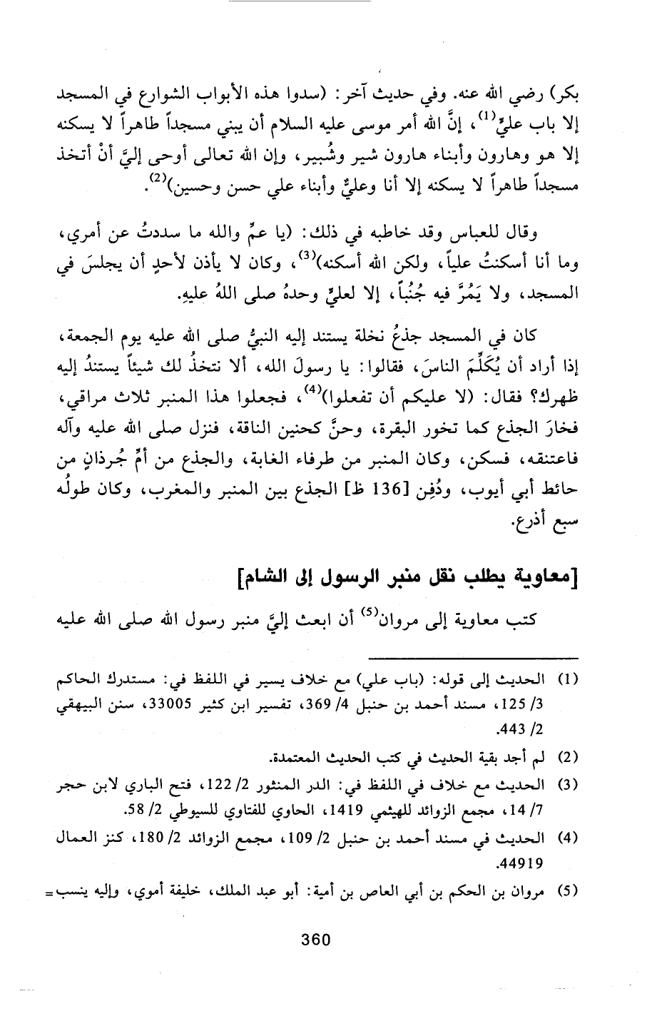 كتب معاوية إلى مروان [5] أن ابعث إليّ منبر رسول الله صلى الله عليه