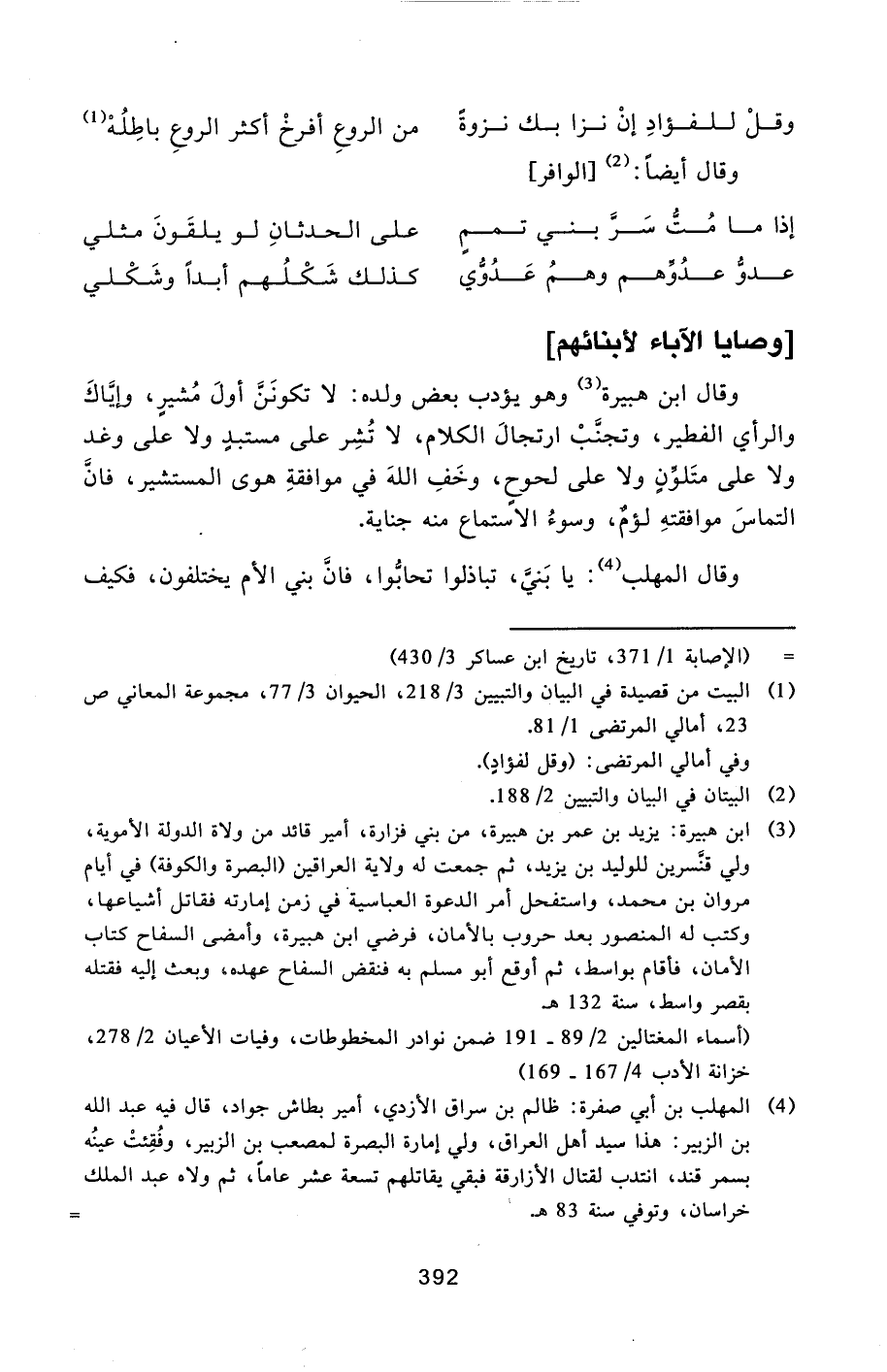 [1] البيت من قصيدة في البيان والتبيين 3/218، الحيوان 3/77، مجموعة المعاني ص 23، أمالي المرتضى 1/81.
