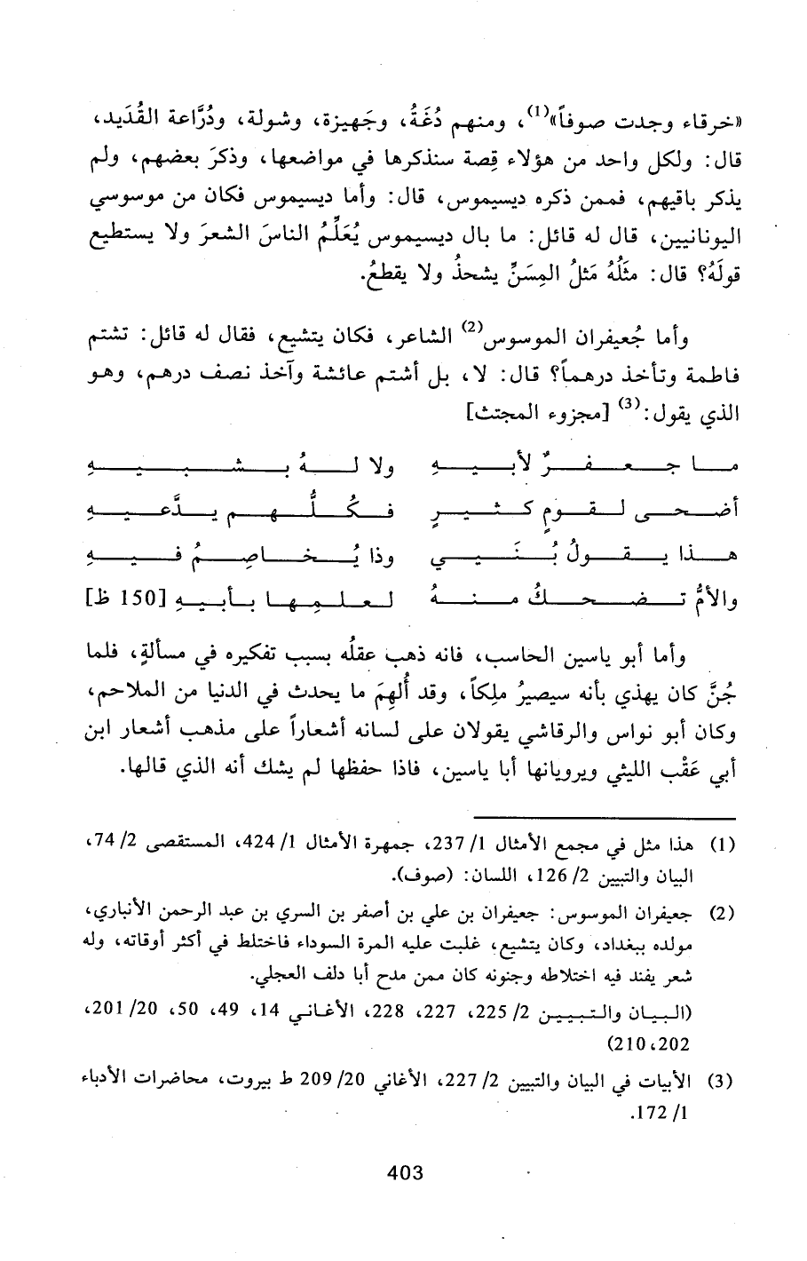 [3] الأبيات في البيان والتبيين 2/227، الأغاني 20/209 ط- بيروت، محاضرات الأدباء 1/172.