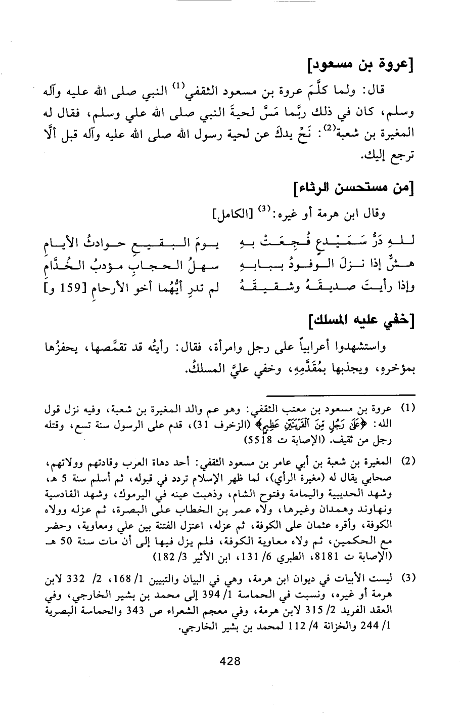 [1] عروة بن مسعود بن معتب الثقفي: وهو عم والد المغيرة بن شعبة، وفيه نزل قول الله: عَلى رَجُلٍ مِنَ الْقَرْيَتَيْنِ عَظِيمٍ
