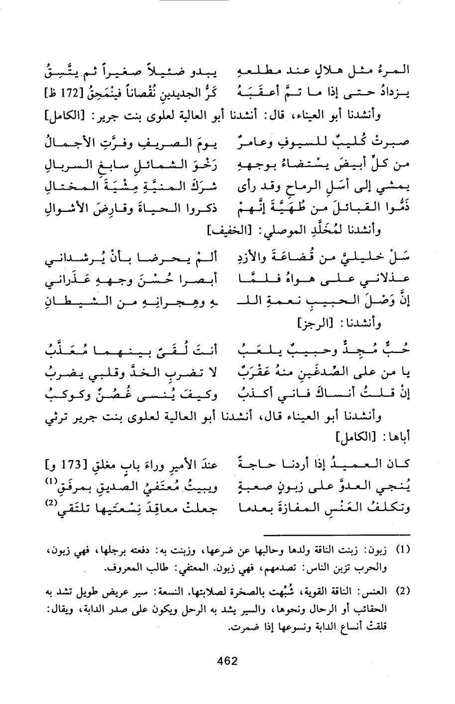 [172 ظ] وأنشدنا أبو العيناء، قال: أنشدنا أبو العالية لعلوى بنت جرير: [الكامل]