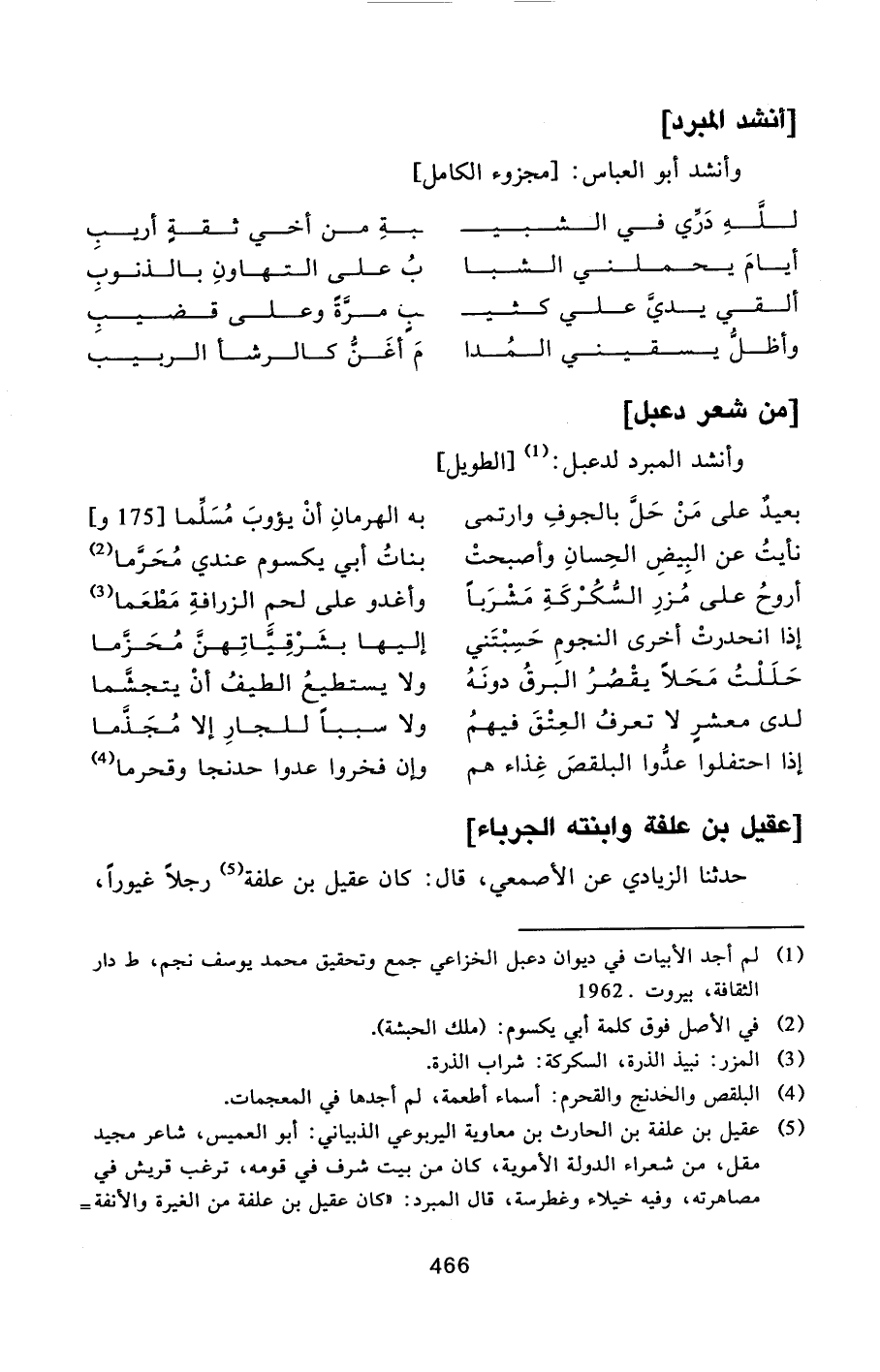 وأنشد المبرد لدعبل: [1] [الطويل]