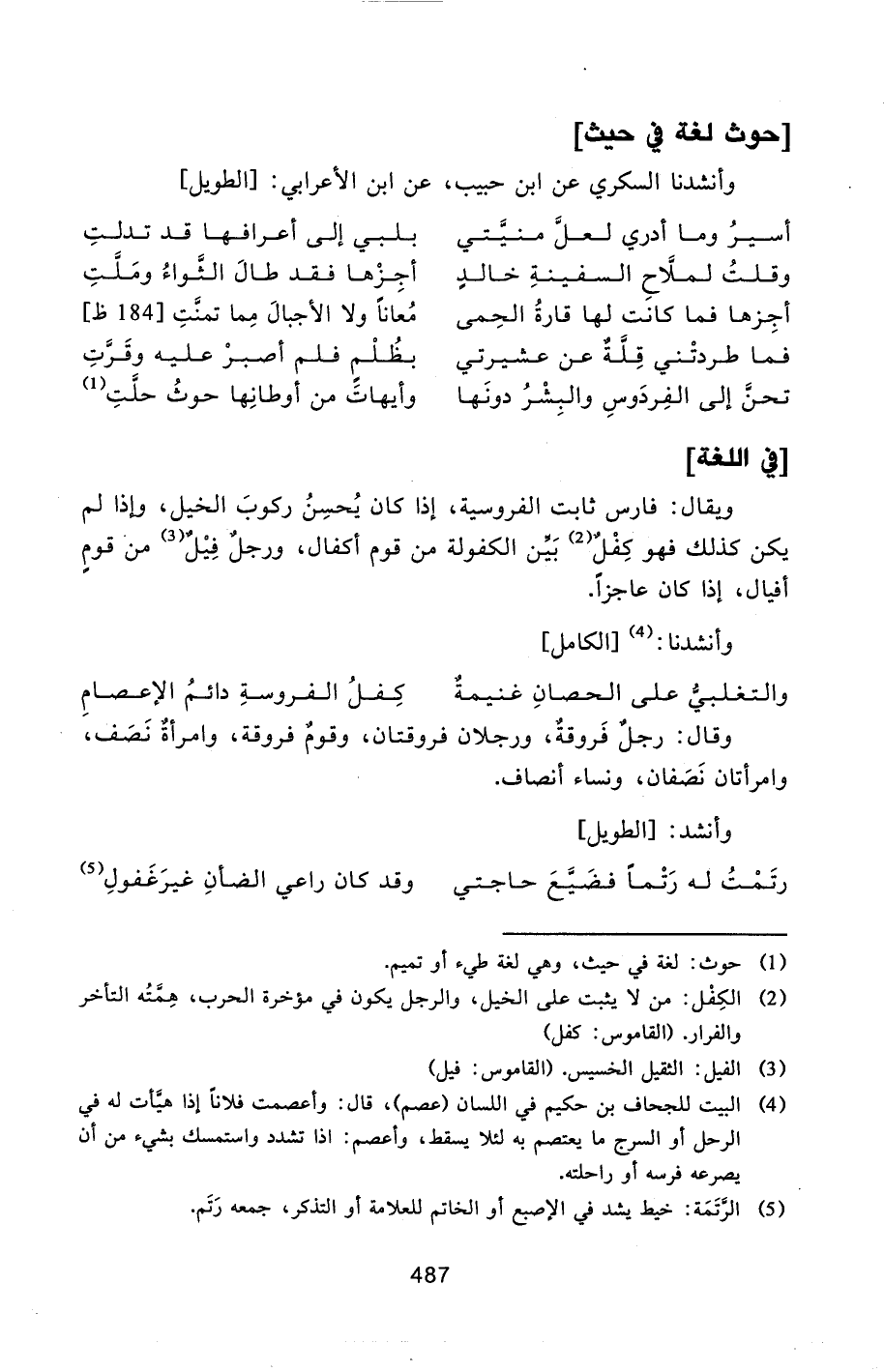 [2] الكفل: من لا يثبت على الخيل، والرجل يكون في مؤخرة الحرب، همّته التأخر والفرار. (القاموس: كفل)