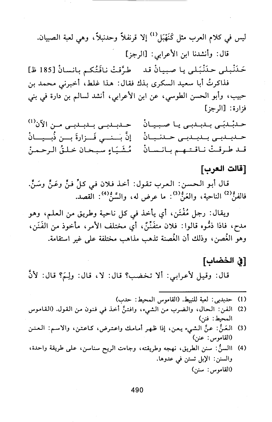 ليس في كلام العرب مثل كنهبل [1] إلا قرنفلا وحدنبلا، وهي لعبة الصبيان.