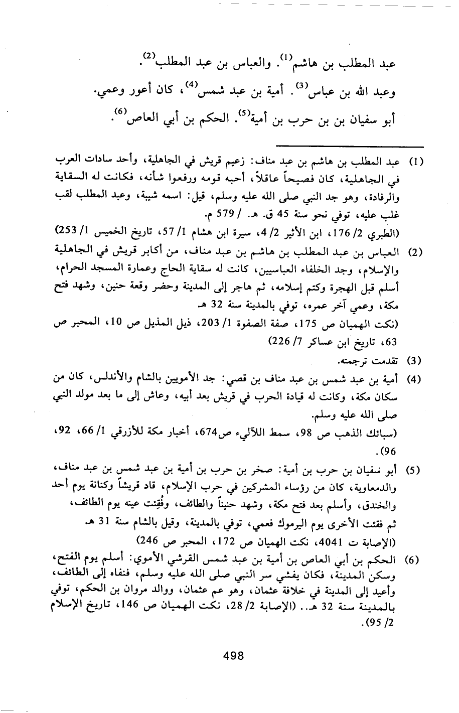 [4] أمية بن عبد شمس بن عبد مناف بن قصي: جد الأمويين بالشام والأندلس، كان من سكان مكة، وكانت له قيادة الحرب في قريش بعد أبيه، وعاش إلى ما بعد مولد النبي صلى الله عليه وسلم.