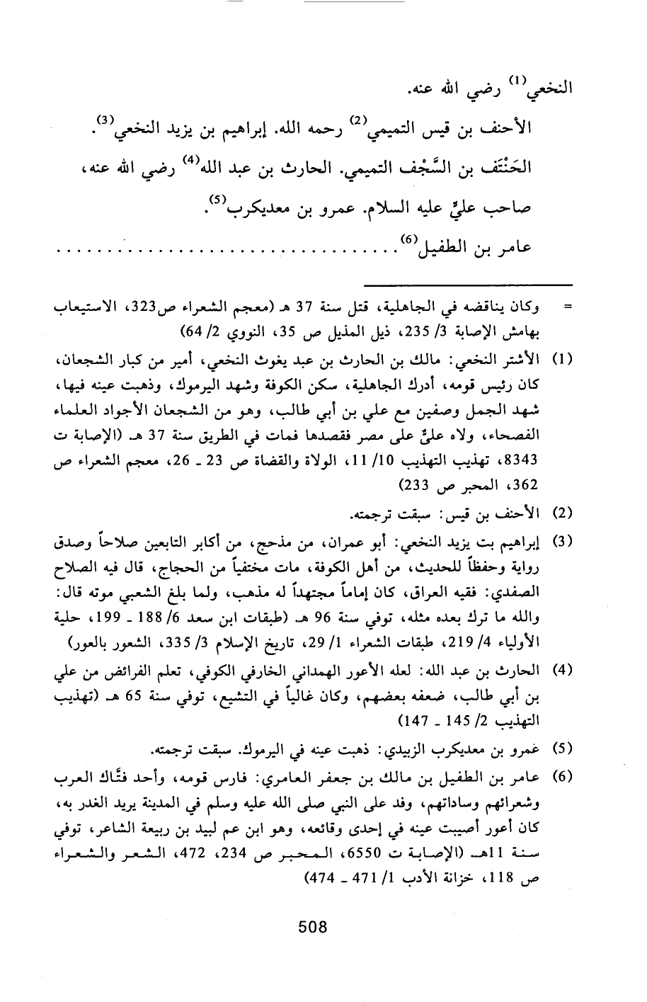 الحنتف بن السّجف التميمي. الحارث بن عبد الله [4] رضي الله عنه، صاحب عليّ عليه السلام. عمرو بن معديكرب [5] .